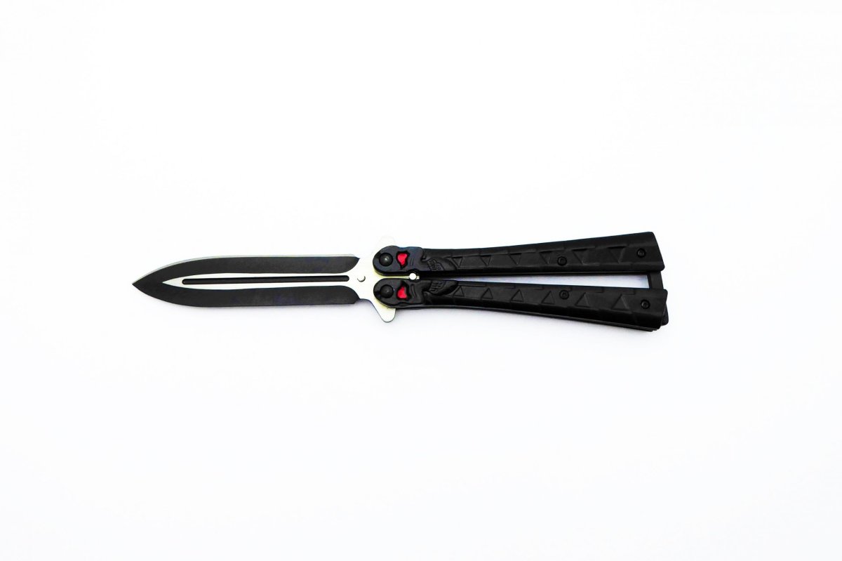 Descripción: Navaja abanico «Black Calavera» con mango de aluminio color negro. Hoja de acero inoxidable acabado negro, punta espada, un filo. Bloqueo de seguridad en pomo. Diseñada en España