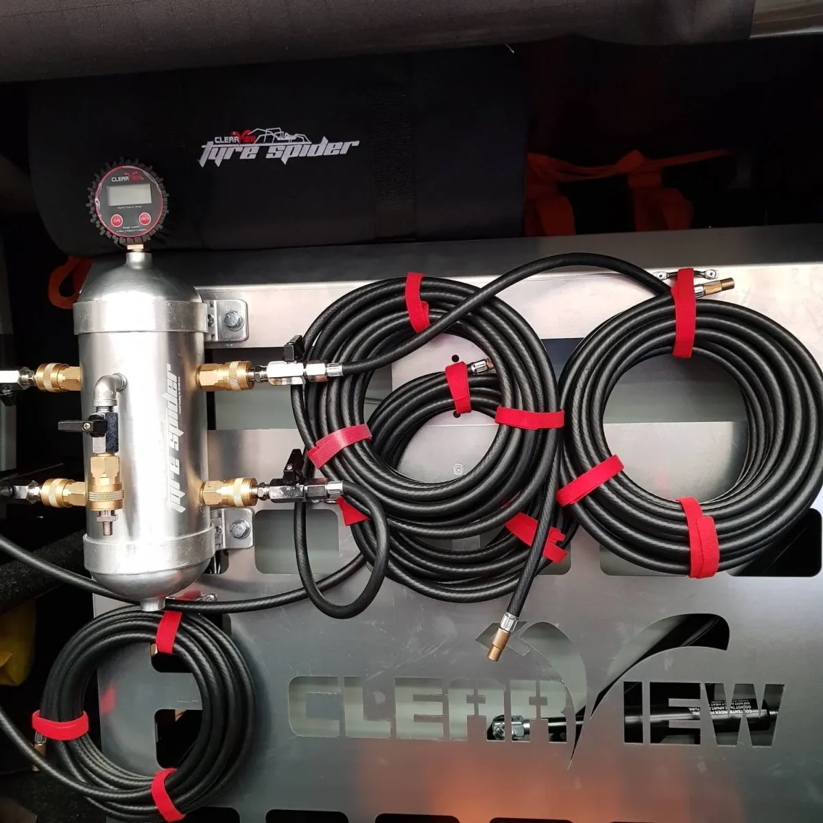 Ya sea que estés conduciendo sobre arena o por caminos blandos y embarrados, el ClearView Tyre Spider te ayudará rápidamente y fácilmente a ajustar de manera uniforme la presión de los neumáticos de tu vehículo, caravana o remolque. Diseñado para funcionar de forma independiente o conectado al compresor de aire de tu vehículo.