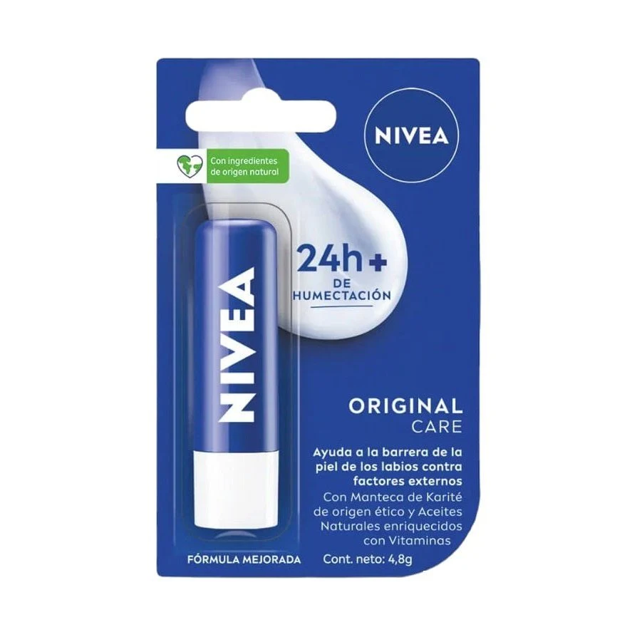 El Protector labial NIVEA Essential Original Care cuida los labios para mantenerlos suaves y protegerlos del resecamiento durante todo el día. Su fórmula con Aceites de origen Natural y Manteca de Karité tiene una placentera textura que se funde instantáneamente en los labios dejando una apariencia natural, tersa y sin color.
