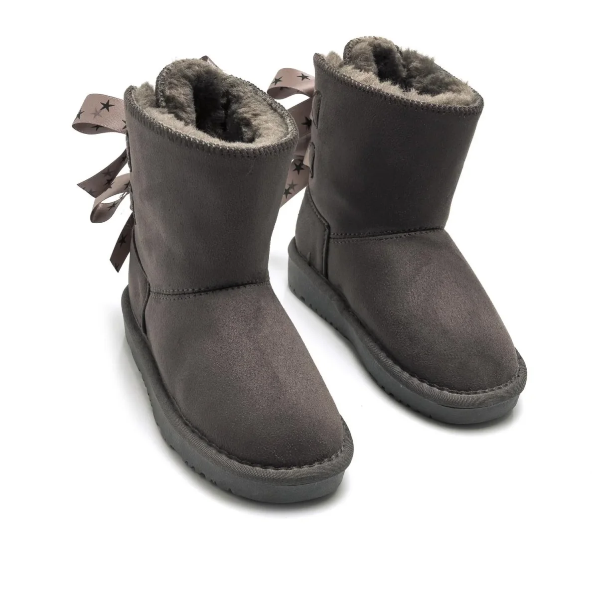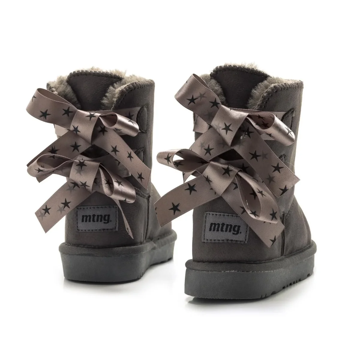 Bota de suave y agradable pelo interior de niña Mustang en color gris con detalle de lazo en la parte trasera.