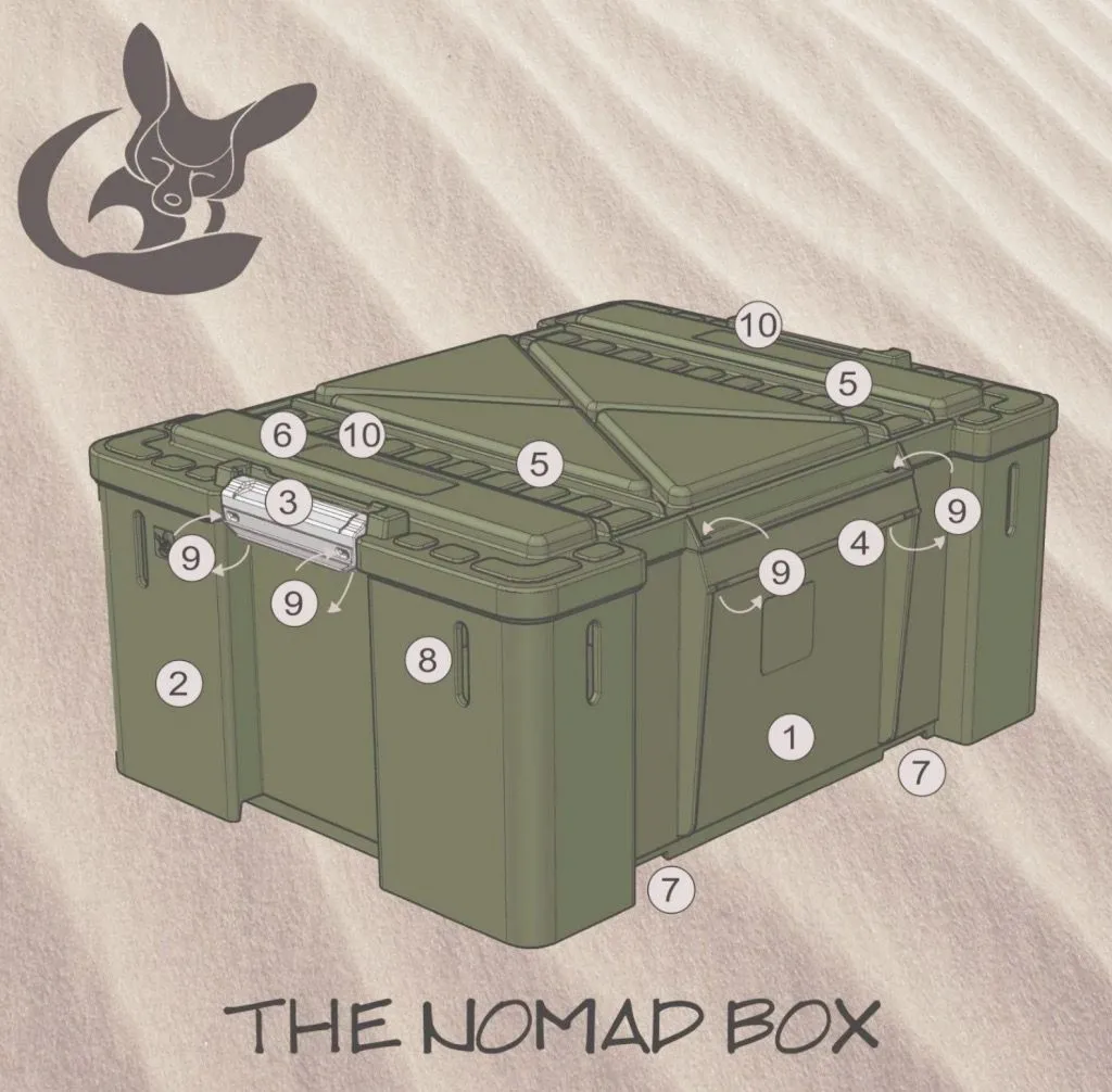 Las Nomad Box son cajas muy robustas, diseñadas para un almacenaje y transporte seguro de todo su equipamiento en cualquier tipo de viaje incluso los más extremos. Las cajas son apilables con una excelente sujeción entre cajas. Las esquinas reforzadas de doble pared garantizan una óptima resistencia al apilar cargas pesadas. Los prácticos cierres en los lados cortos sirven como asas para levantar y abrir. Los 2 carriles en la parte superior de la tapa aseguran un amarre perfecto mediante cinchas.