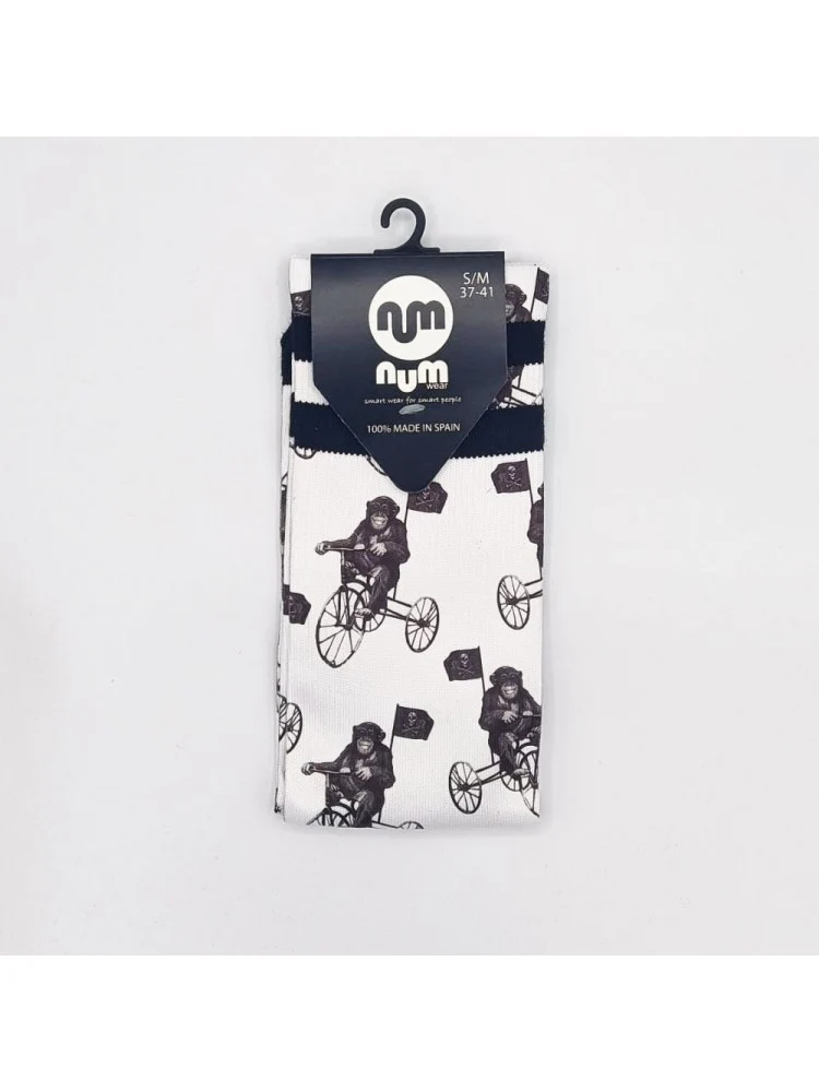 Calcetines de la marca NUM Wear con diseño diseño mono pirata con fondo blanco.