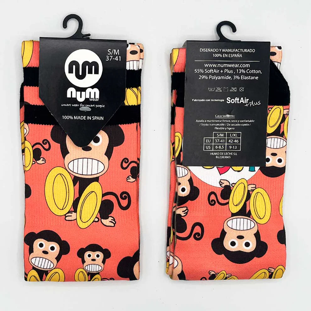 Estos calcetines unisex de la marca Num Wear cuentan con un diseño único y divertido con monos y platillos. Fabricados con materiales de alta calidad, estos calcetines son cómodos, duraderos y perfectos para añadir un toque de estilo a tus pies. Ideal para entusiastas de la música y fanáticos de los primates.