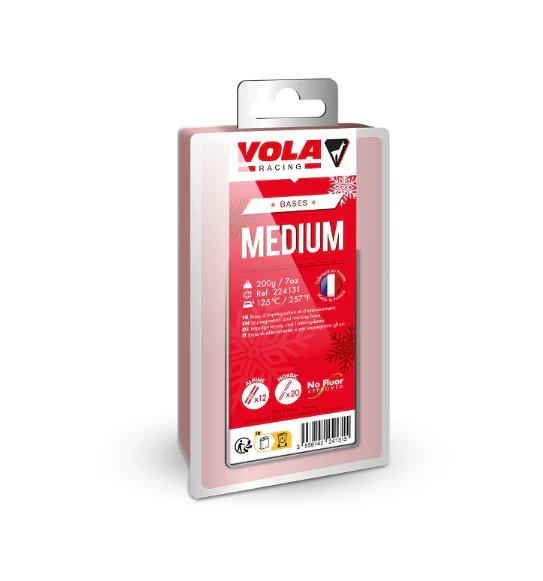 Base de preparación para esquís de competición (todas las disciplinas). De dureza intermedia, esta base permite nutrir la suela al tiempo que la protege contra la abrasión de la nieve. Categorías juveniles: Cera de competición no fluorada para GS