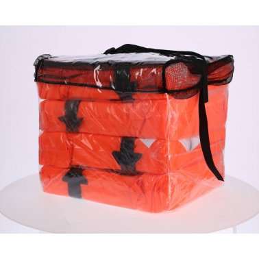Bolsa impermeable y compacta conteniendo 4 chalecos salvavidas OCEA +70kg:
