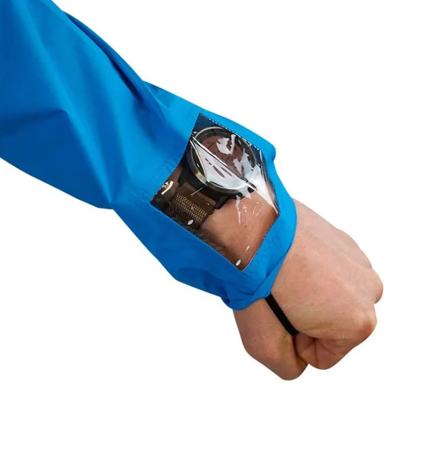 Además, cuenta con detalles reflectantes para mayor seguridad y un bolsillo en el pecho con cremallera. Cuenta también con un bolsillo transparente para el reloj.