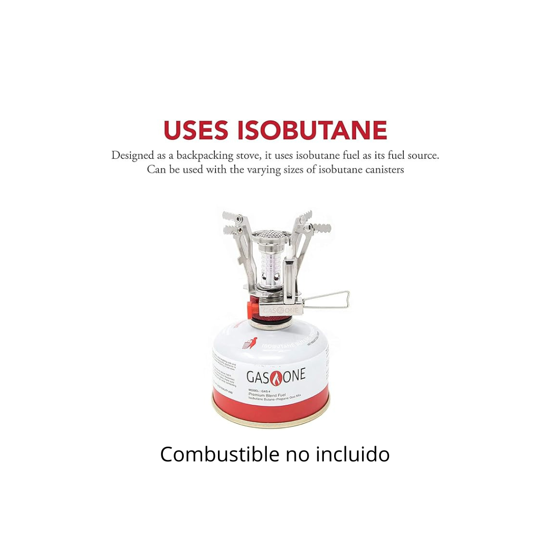 - Duradero y compacto: La estufa para mochileros de Gas One es la cocina perfecta tanto para mochileros como para campistas. Fabricada con una aleación de aluminio duradera y acero inoxidable, la estufa de Gas One está diseñada para soportar altas temperaturas, ser compacta y discreta para facilitar su transporte.