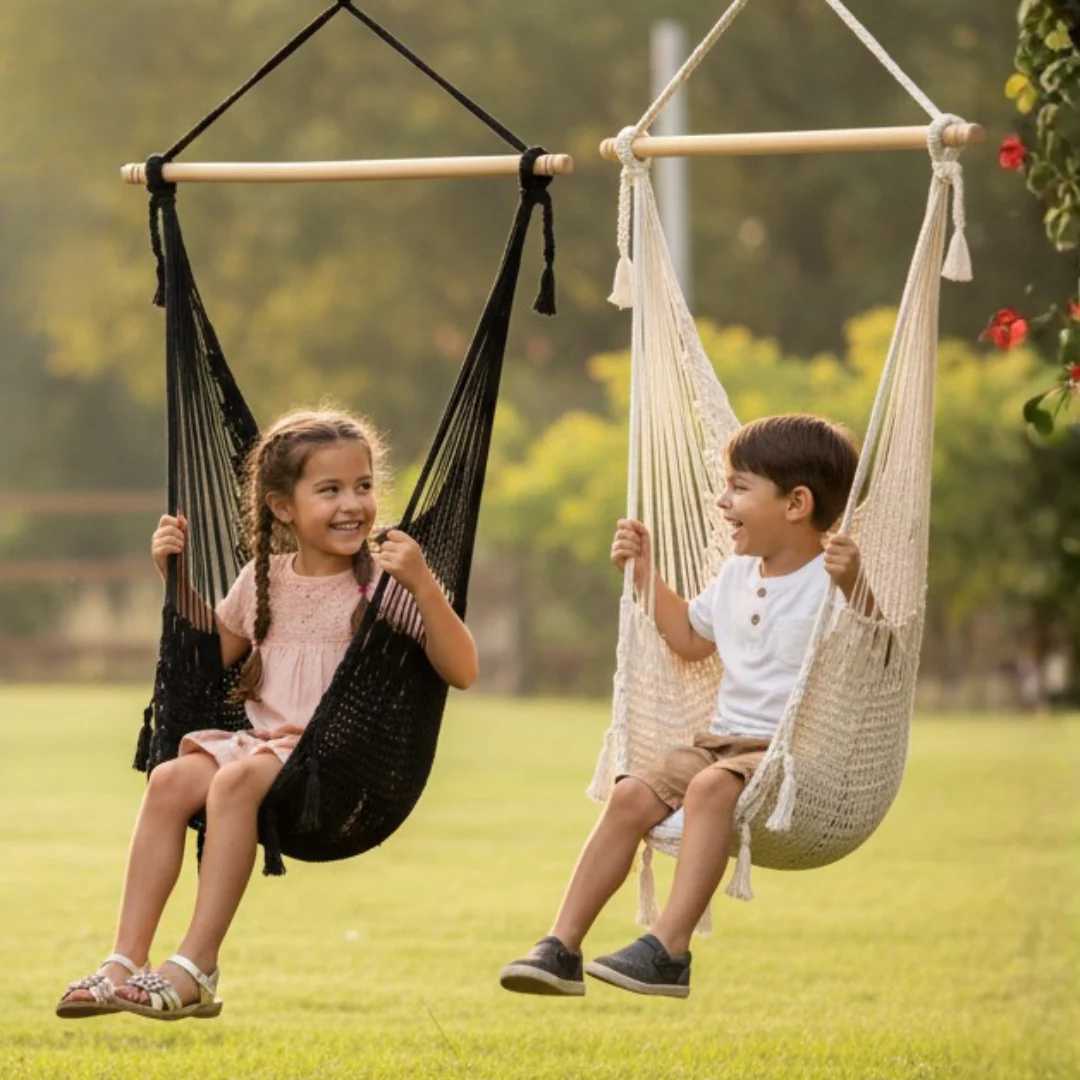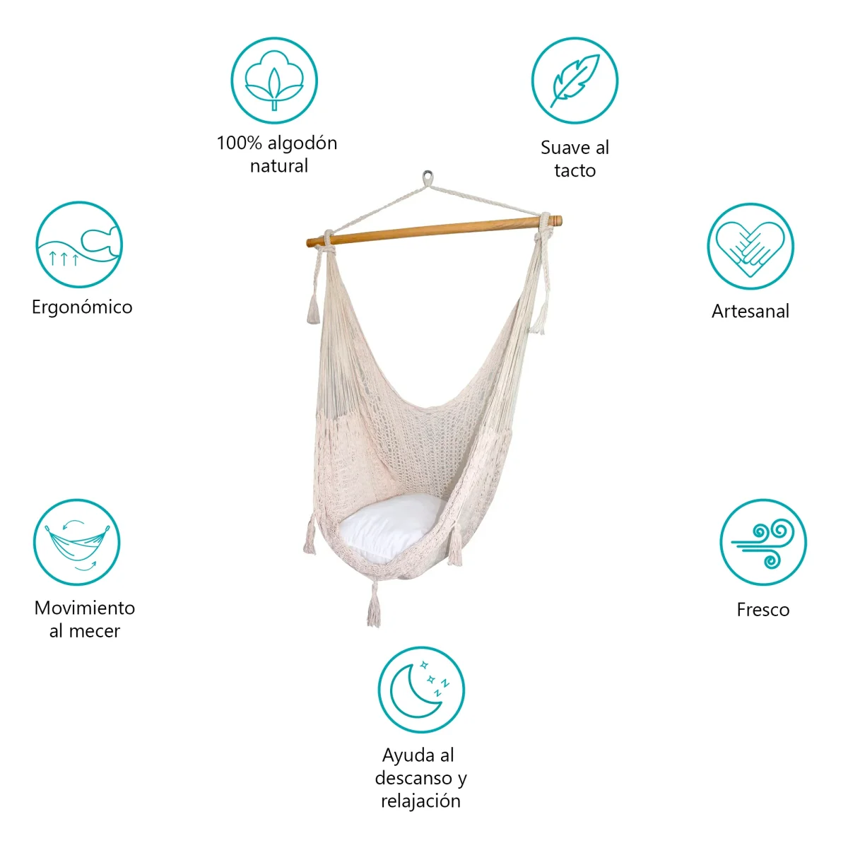 Columpio de hilo de algodón. Dale un toque divertido y decorativo a los espacios de tu casa. Un columpio en tu cuarto, tu patio, tu sala u oficina ¿porqué no?
