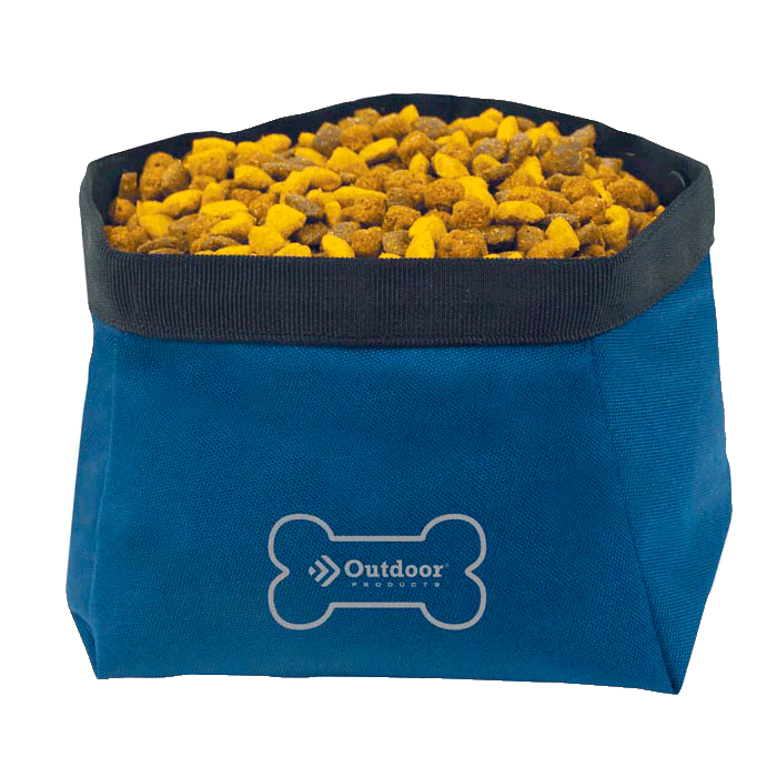 El Tazón plegable para perros se expande a ocho pulgadas y está hecho de tejido recubierto de urathane resistente al agua.