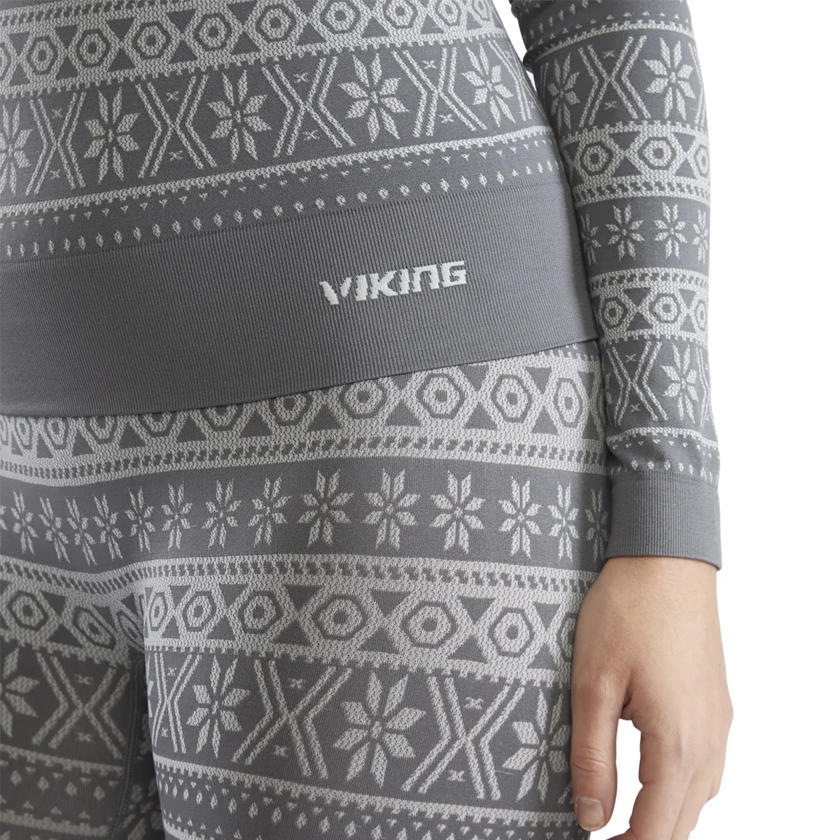 Viking Hera es un conjunto de ropa interior termo activa para mujer con distintivos adornos invernales. Un estampado muy bonito y elegante que encaja perfectamente para tus actividades invernales.