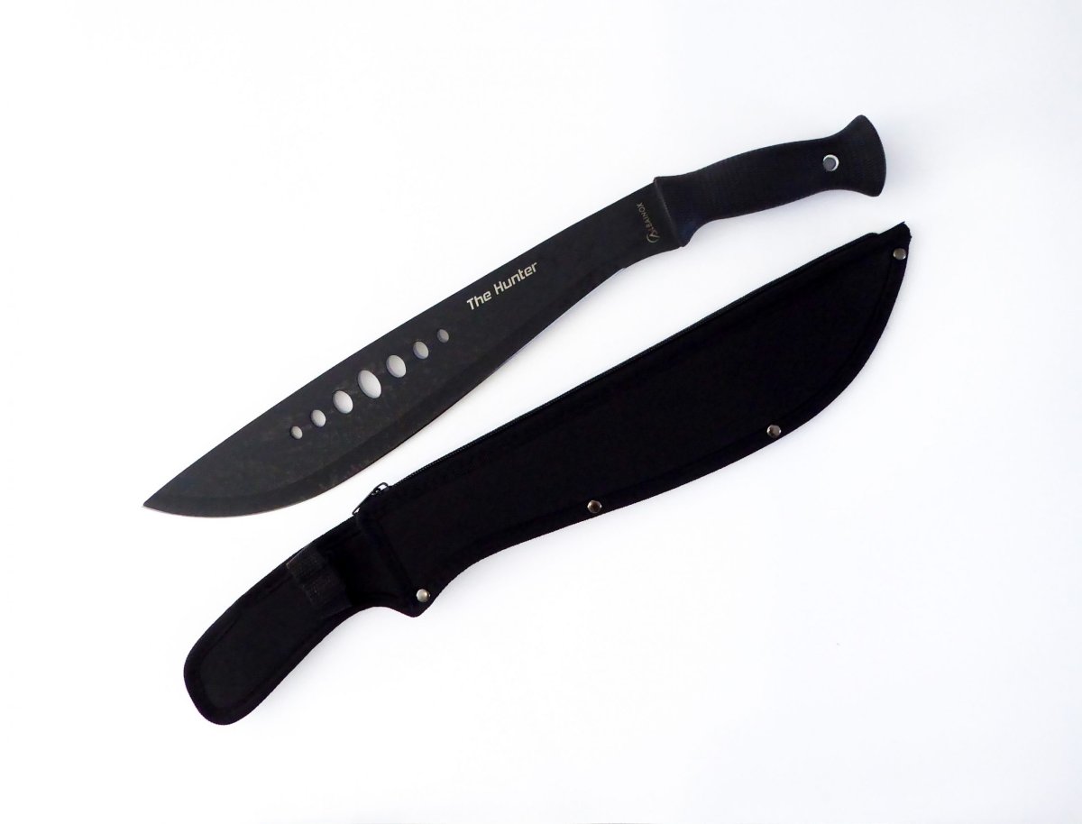 Descripción:«The Hunter» Cortacañas con mango de goma color negro, para una mejor sujeción. Hoja de acero inoxidable calada acabado negro. Un solo filo. Incluye funda de nailon color negro con cremallera y correa ajustable para transporte.