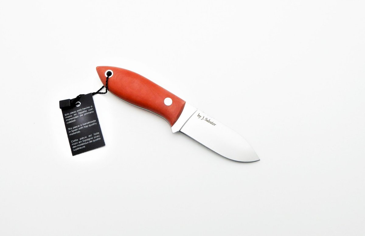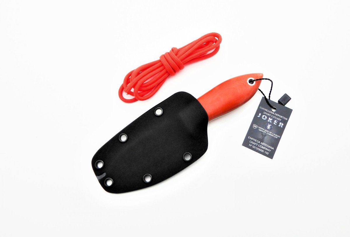 Descripción: «Avispa» Cuchillo de monte pequeño y ligero con mango en canvas micarta naranja con separador negro. Hecho a mano en Albacete. Hoja de acero Sandvik 14C28N de alta resistencia y durabilidad. Incluye funda en Kydex ultraligera y 1,30 metros de cordón paracord 550. Supervivencia.