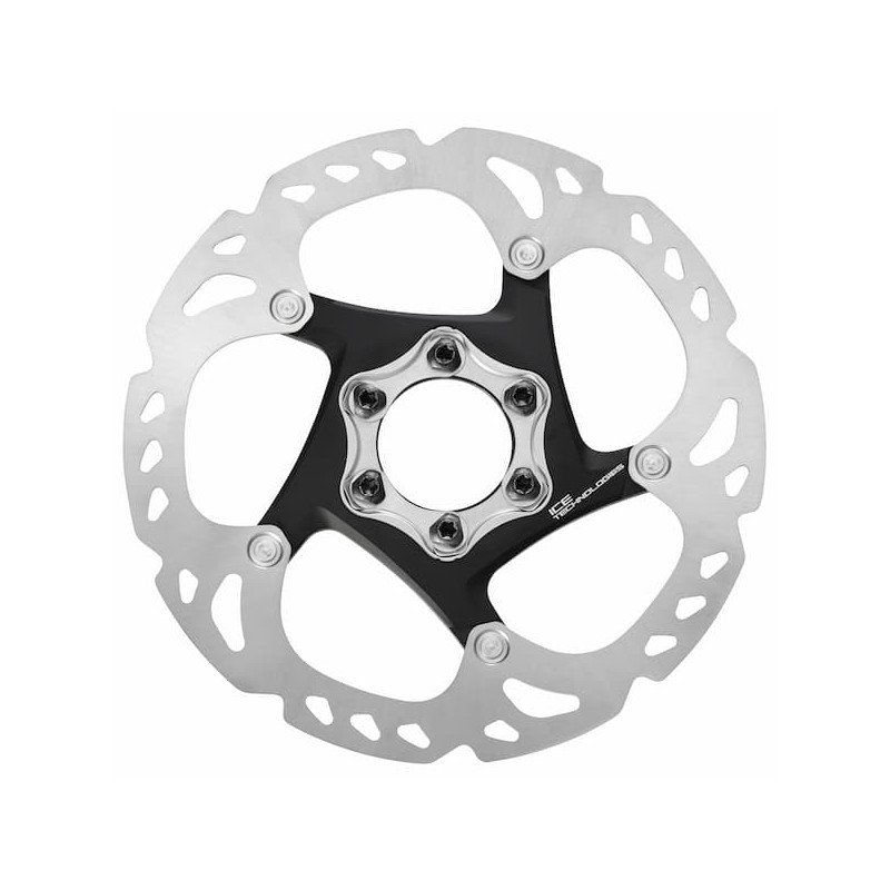 Disco Shimano Deore XT Ice-Tech de 160 mm y con rotor de 6 tornillos. Incorpora la tecnología de refrigeración Ice-Technologies para un rendimiento constante.