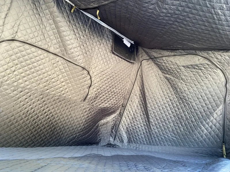 - La tienda se puede cerrar completamente con el forro térmico instalado, creando un espacio seguro y acogedor.