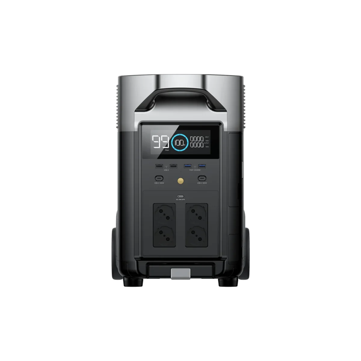 - Potencia de salida de hasta 3600 W. El DELTA PRO puede alimentar dispositivos de gran rendimiento, como frigoríficos, secadoras y herramientas eléctricas. Esto lo convierte en una opción ideal para uso doméstico, profesional o de emergencia.