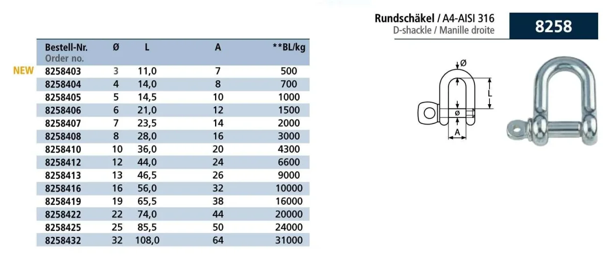 Grillete Recto Inoxidable