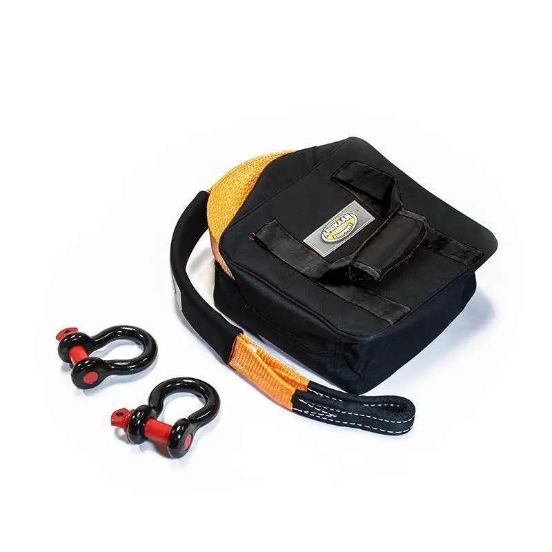 - Eslinga kinética de 9 metros y 8 toneladas: La eslinga kinética es una herramienta esencial para el rescate todoterreno. Es capaz de absorber energía y reducir la fuerza de tracción, lo que la hace más segura que una eslinga estática tradicional.