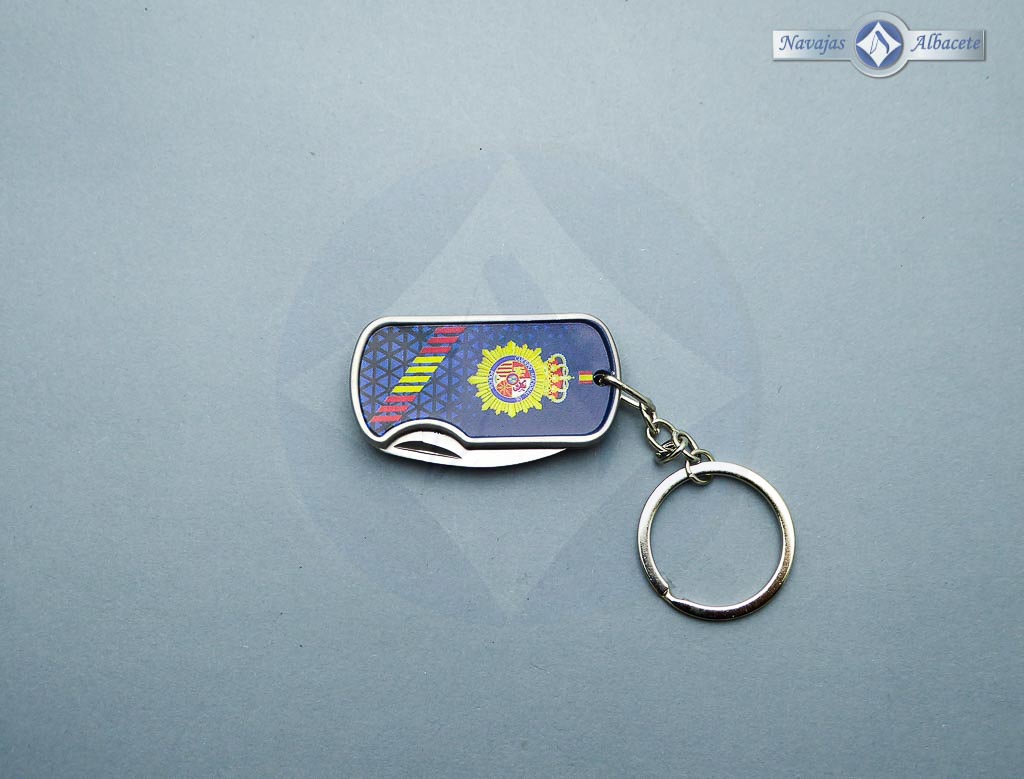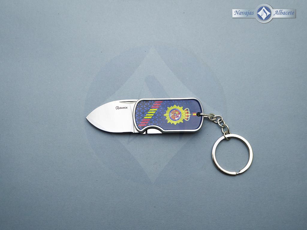 Descripción: Navaja llavero «Policía Nacional española» con mango de aluminio 3D, con anilla y clip para cinturón. Hoja de acero inoxidable molibdeno vanadio acabado satinado, con uña para su fácil extracción. Sistema de bloqueo Frame lock. Diseñada en España.