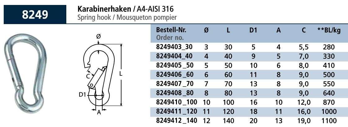 Mosquetón Inoxidable tipo Bombero A4 AISI 316