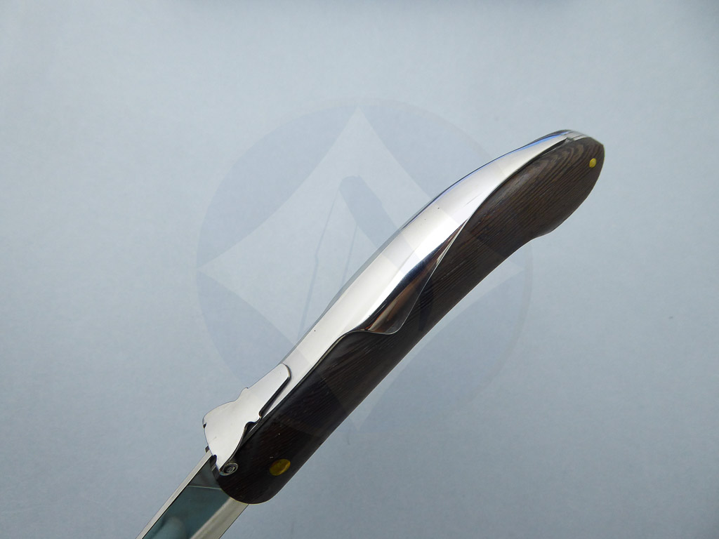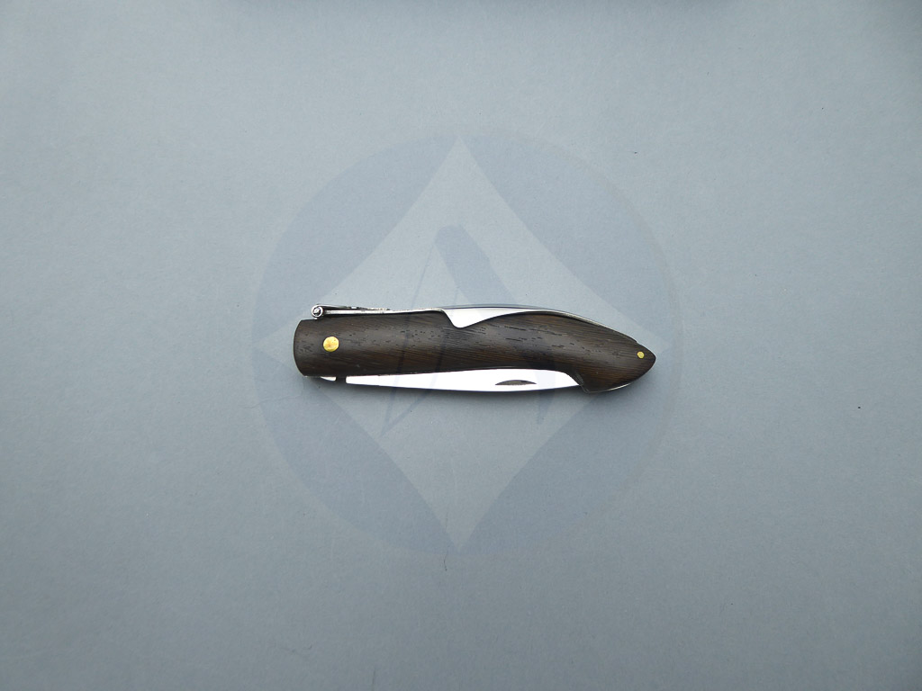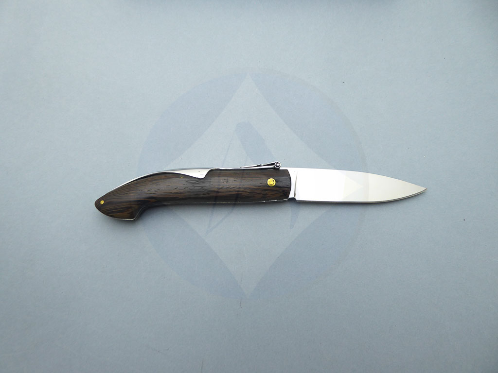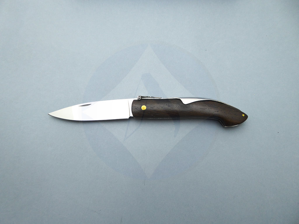Descripción: Navaja con mango de madera stamina marrón. Hoja de acero inoxidable molibdeno vanadio, con uña para su fácil extracción. Sistema de cierre de palanquilla. Diseñada en España