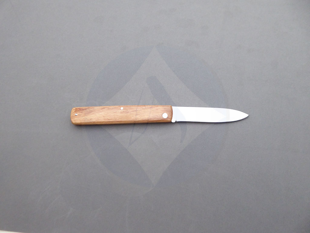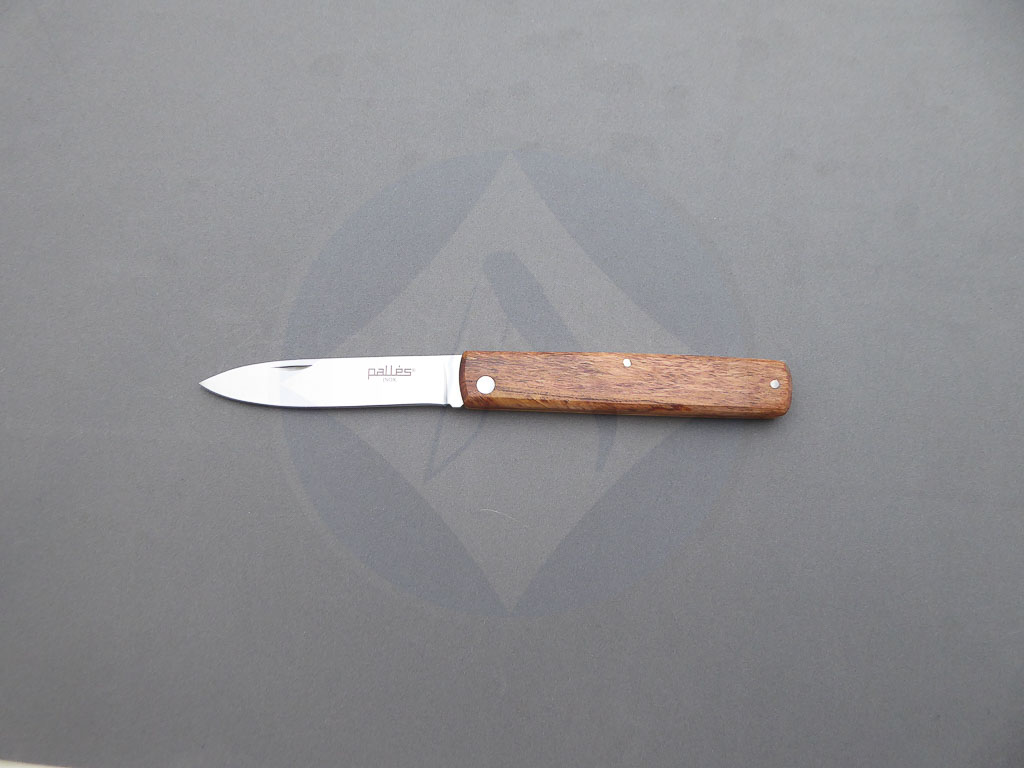 Descripción: Navaja de campo «Pallés» con mango de madera muy ligera. Hoja de acero inoxidable molibdeno vanadio, con uña para su fácil extracción. Cierre de pistón. Disponible en 3 tamaños de hoja, seleccione la opción que desee.