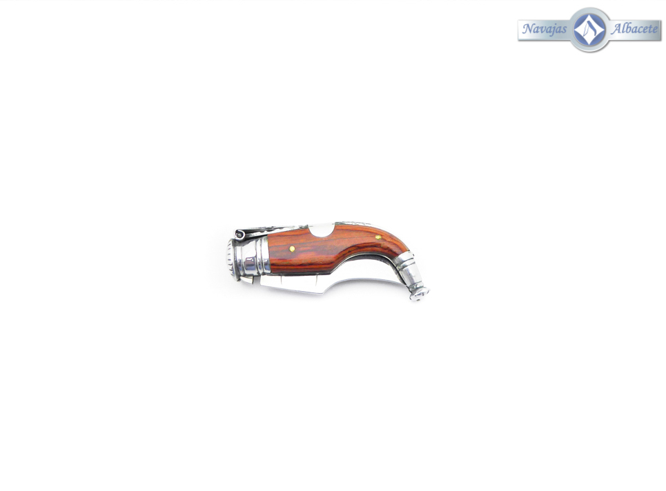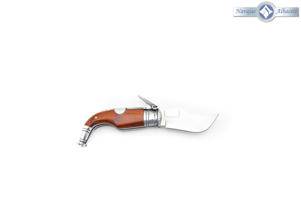 Descripción: «Capaora» Navaja clásica con mango en madera stamina roja, virola y rebajo en aluminio. Hoja de acero inoxidable cromado, tipo lengua de vaca, con uña para su fácil extracción. El muelle es de acero con palanquilla. Disponible en diferentes tamaños de hoja, seleccione la opción que desee.