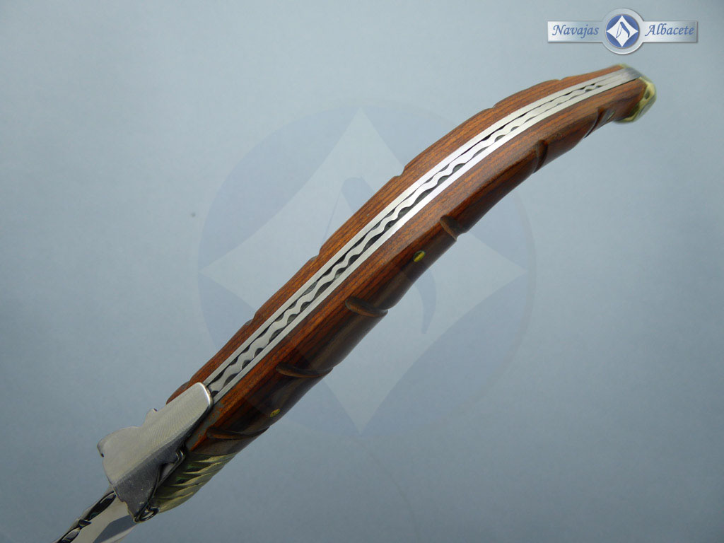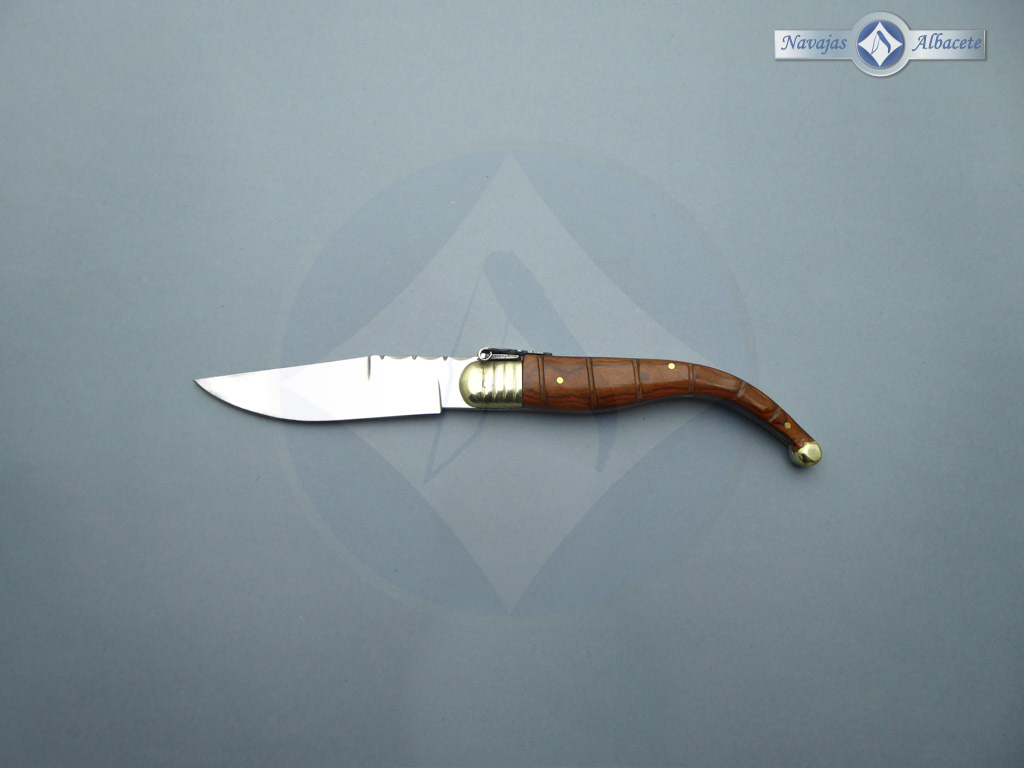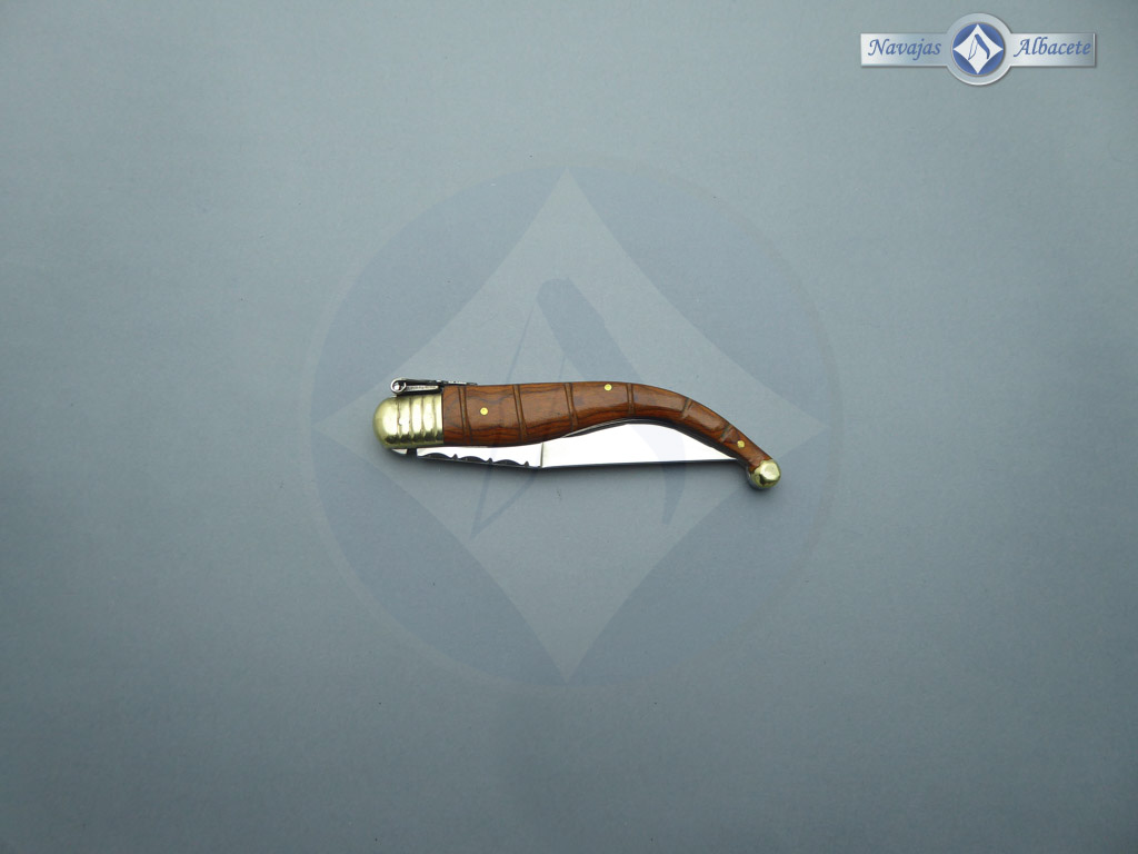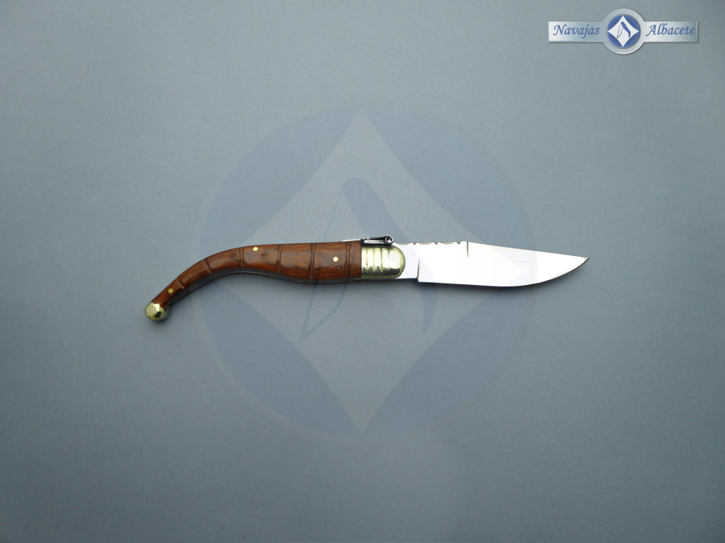 Descripción: Navaja clásica con mango de madera stamina roja y virola de alpaca. Hoja de acero inoxidable acabado espejo. El muelle es de acero con palanquilla. Diseñada en España.