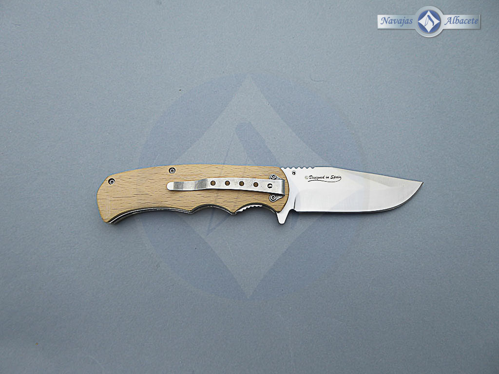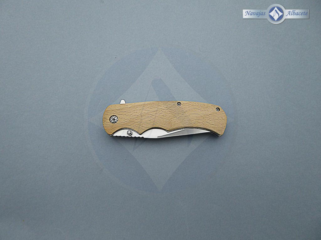 Descripción: Navaja campera con mango de madera. Hoja de acero inoxidable molibdeno vanadio acabado satinado. Bloqueo de seguridad Liner lock. Diseñada en España.