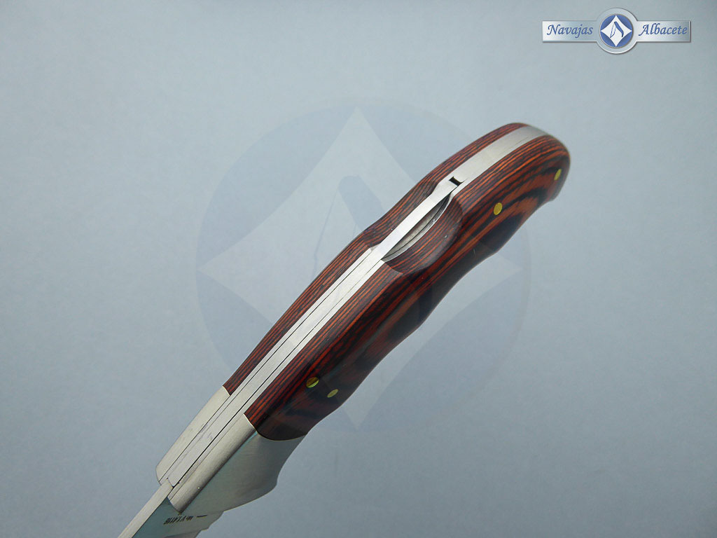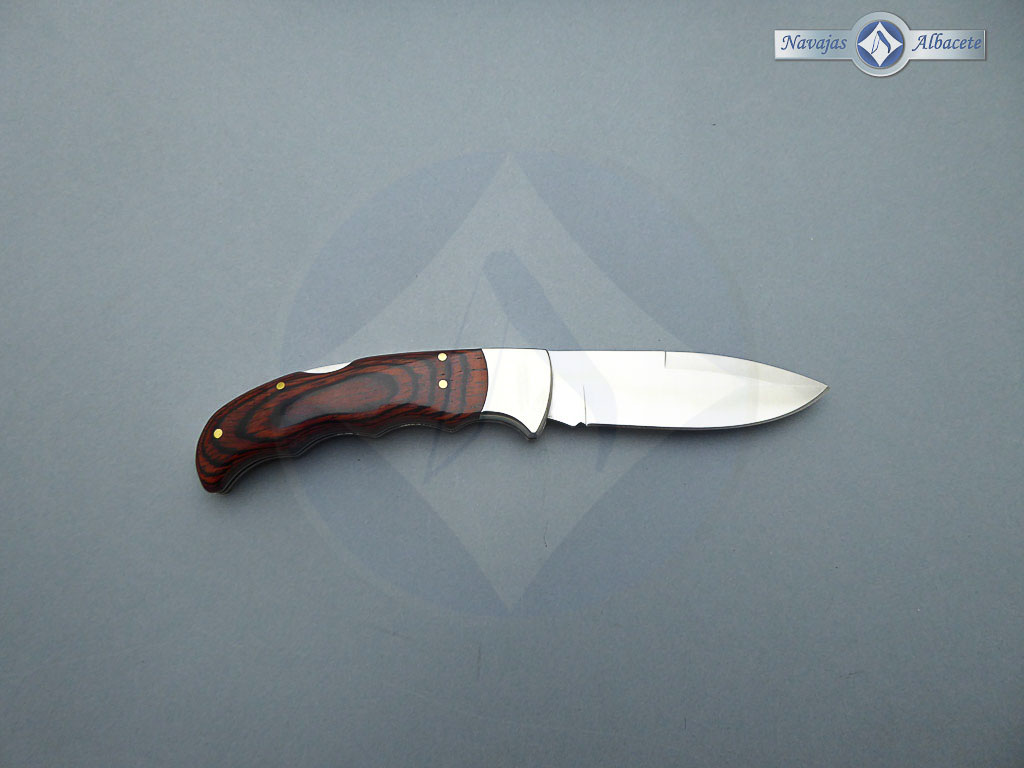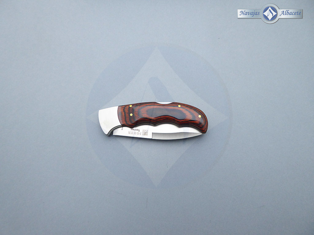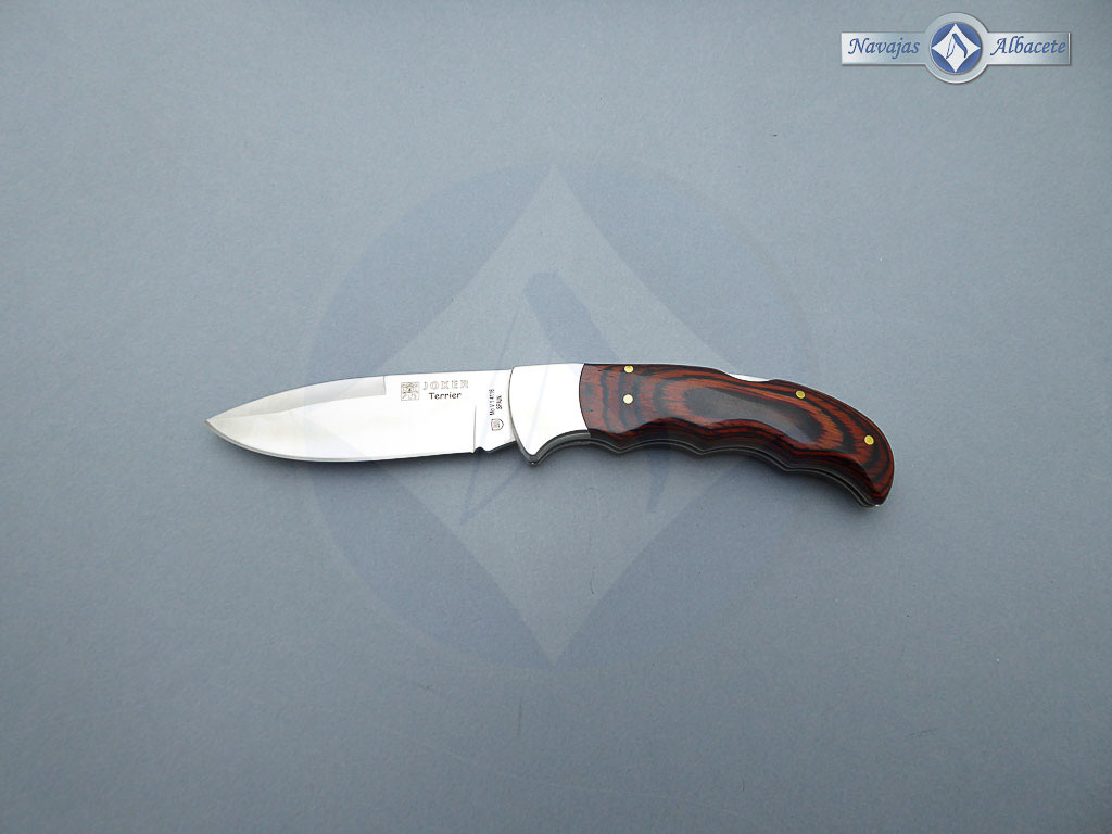Descripción: Navaja de caza «Terrrier» con puño de madera stamina y virola de acero, con diseño ergonómico para un mejor agarre. Hoja de acero inoxidable molibdeno vanadio de gran resistencia y dureza. Bloqueo de seguridad Back Lock. Disponible en diferentes acabados.