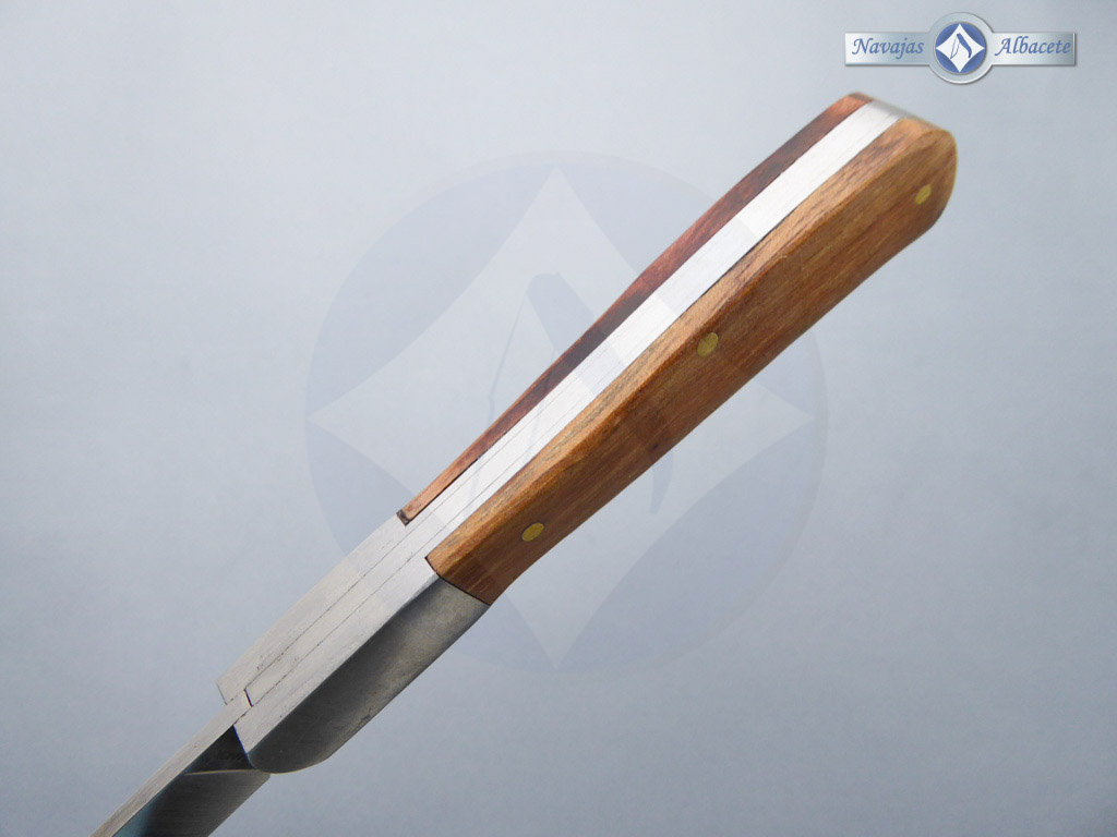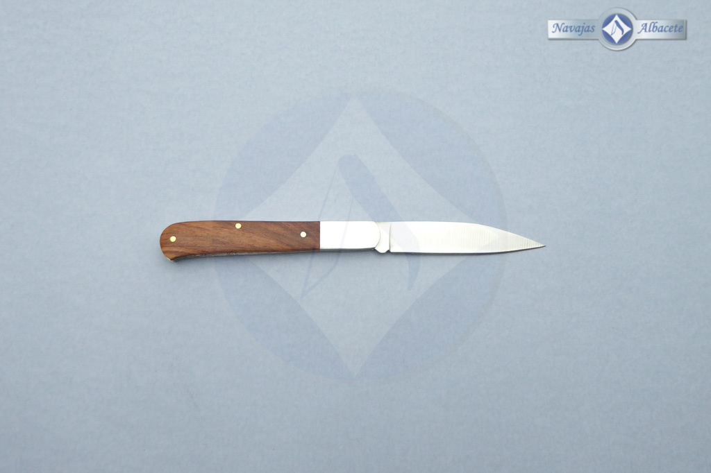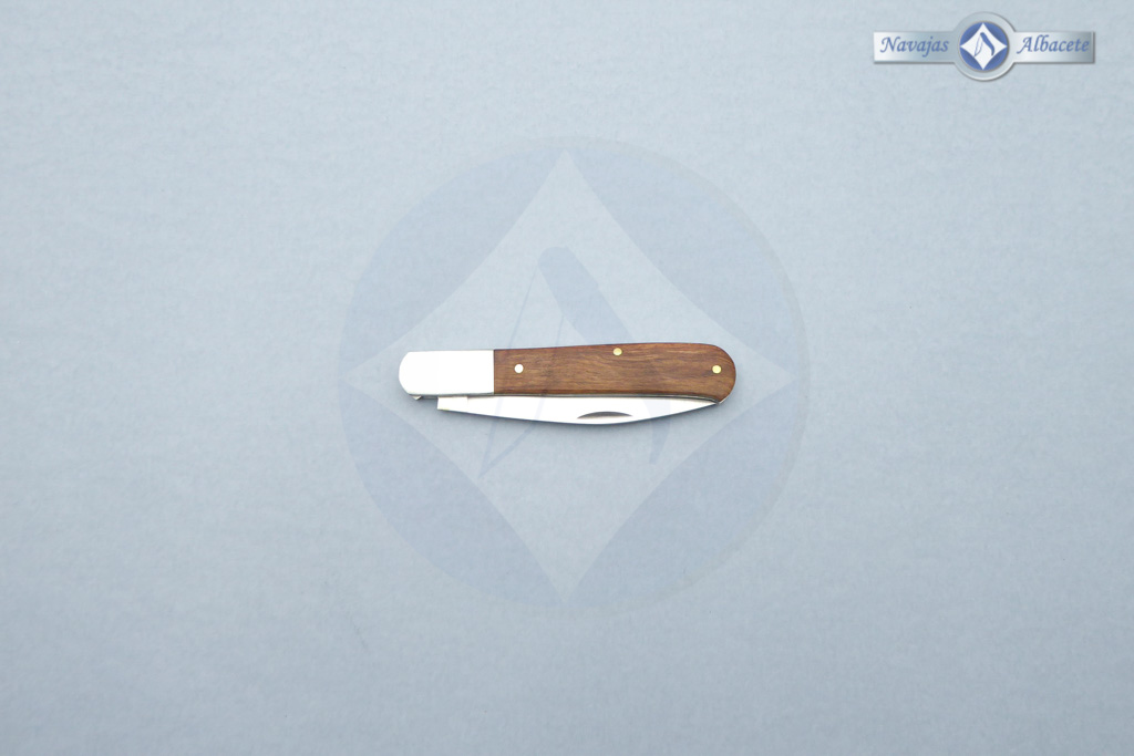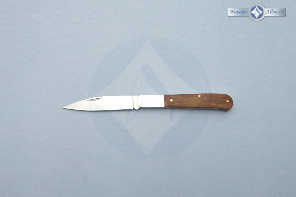 Descripción: Navaja «Girodia» con mango de madera y virola de acero. Hoja de acero inoxidable acabado satinado, con uña para su fácil extracción. Muelle de pistón. Disponible en distintos tamaños de hoja, seleccione la opción que desee.