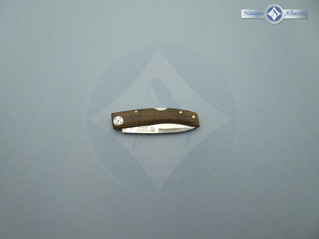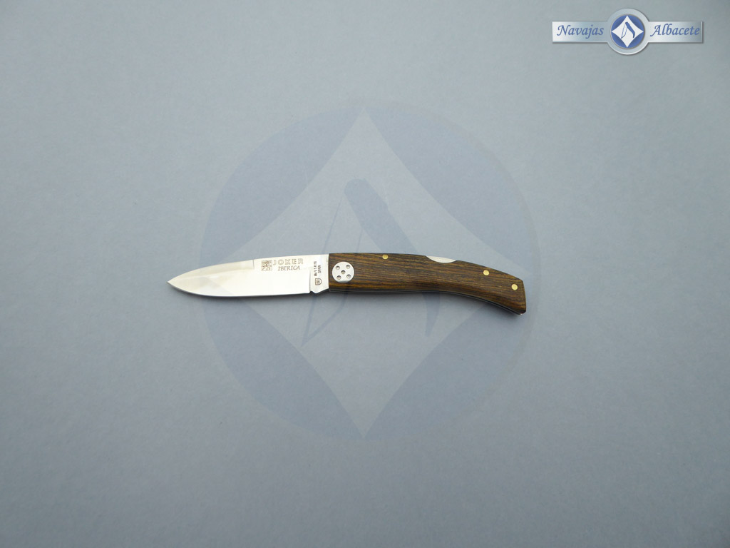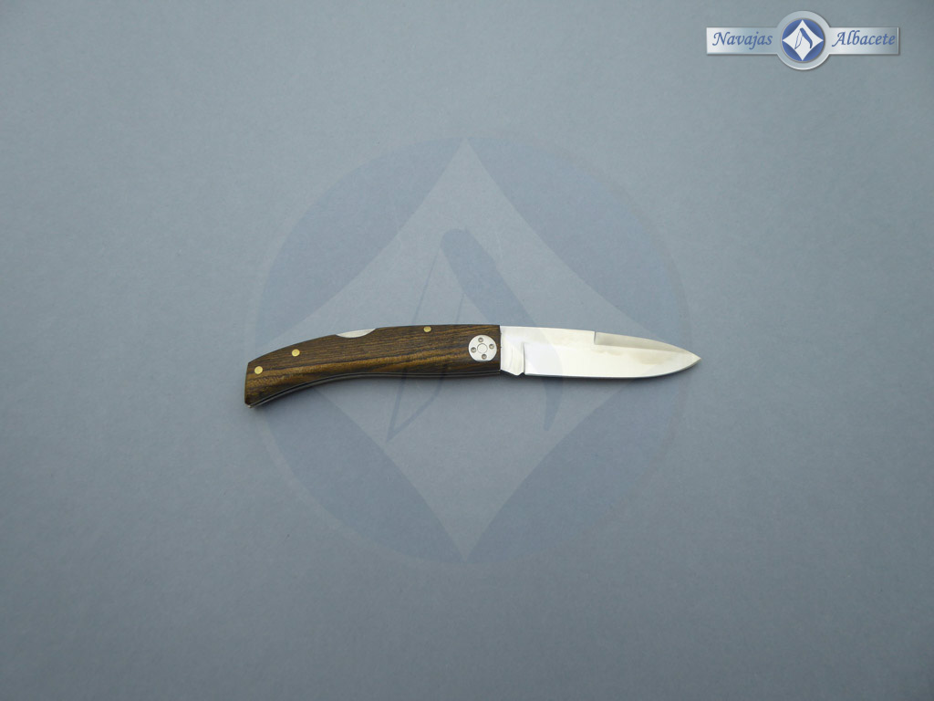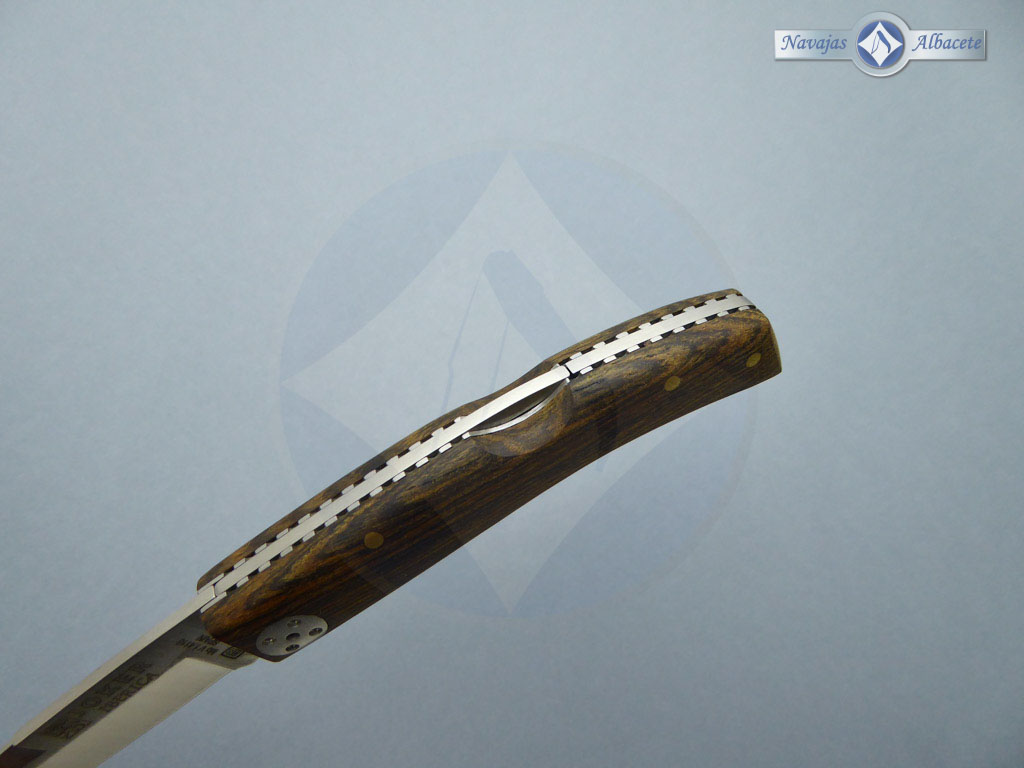 Descripción: Navaja deportiva «Ibérica» de bolsillo con mango en madera de bocote y hora de acero inoxidable de gran resistencia y durabilidad. Hecha a mano en Albacete. Sistema de bloqueo back lock. ÚLTIMAS UNIDADES