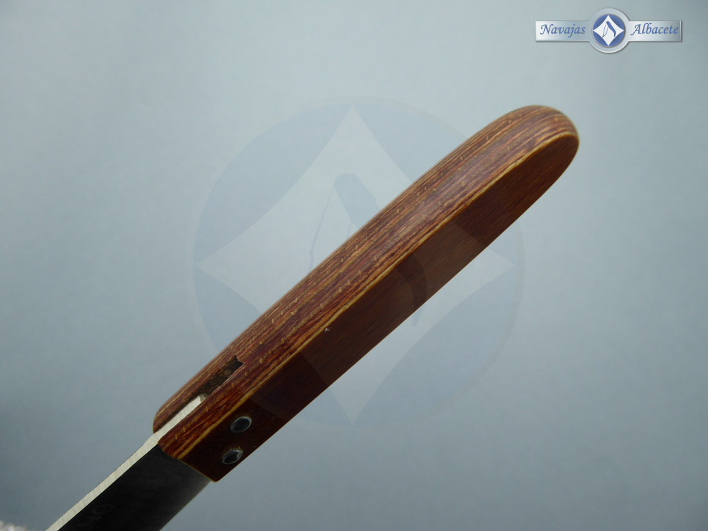 Descripción: Navaja artesana andaluza, de mango recto, de madera laminada prensada y hoja de acero inoxidable de 6,3 cm. con punta caída. Tamaño bolsillo. Fabricada a mano. Mítica navaja cordobesa ideal para uso doméstico y/o labores de campo.