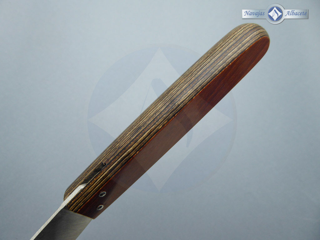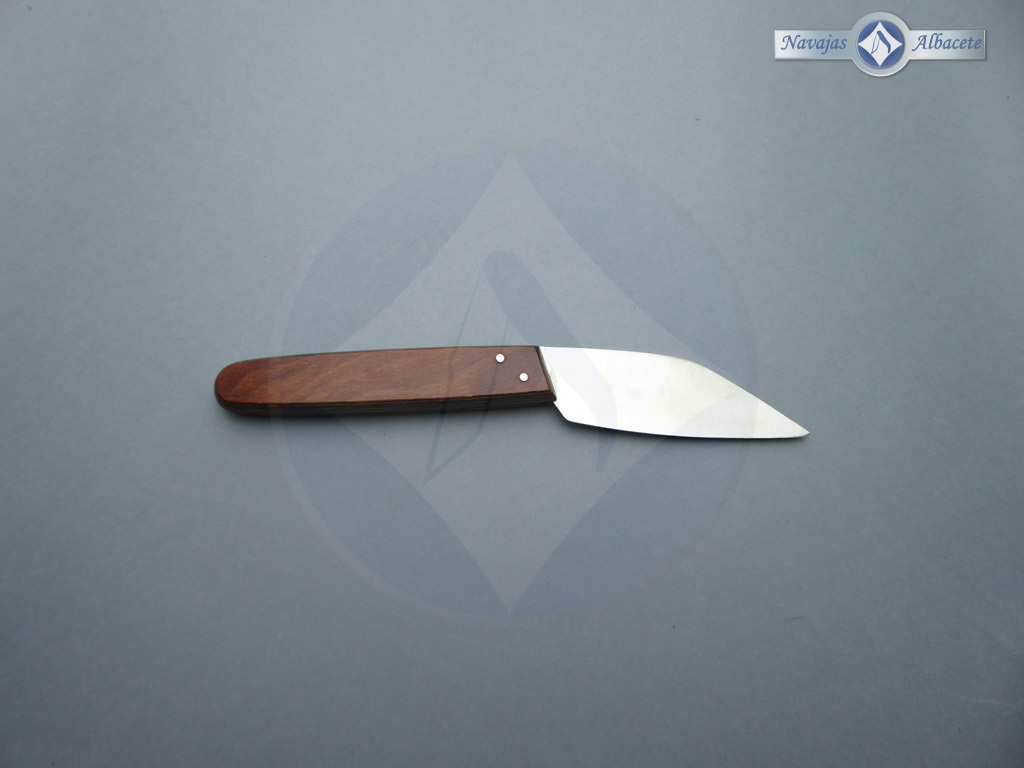 Descripción: Navaja artesana andaluza, con mango recto de madera laminada prensada y hoja de acero inoxidable de 9 cm. con punta caída y uña para su fácil extracción. Fabricada a mano. Mítica navaja cordobesa ideal para uso doméstico y/o labores de campo.