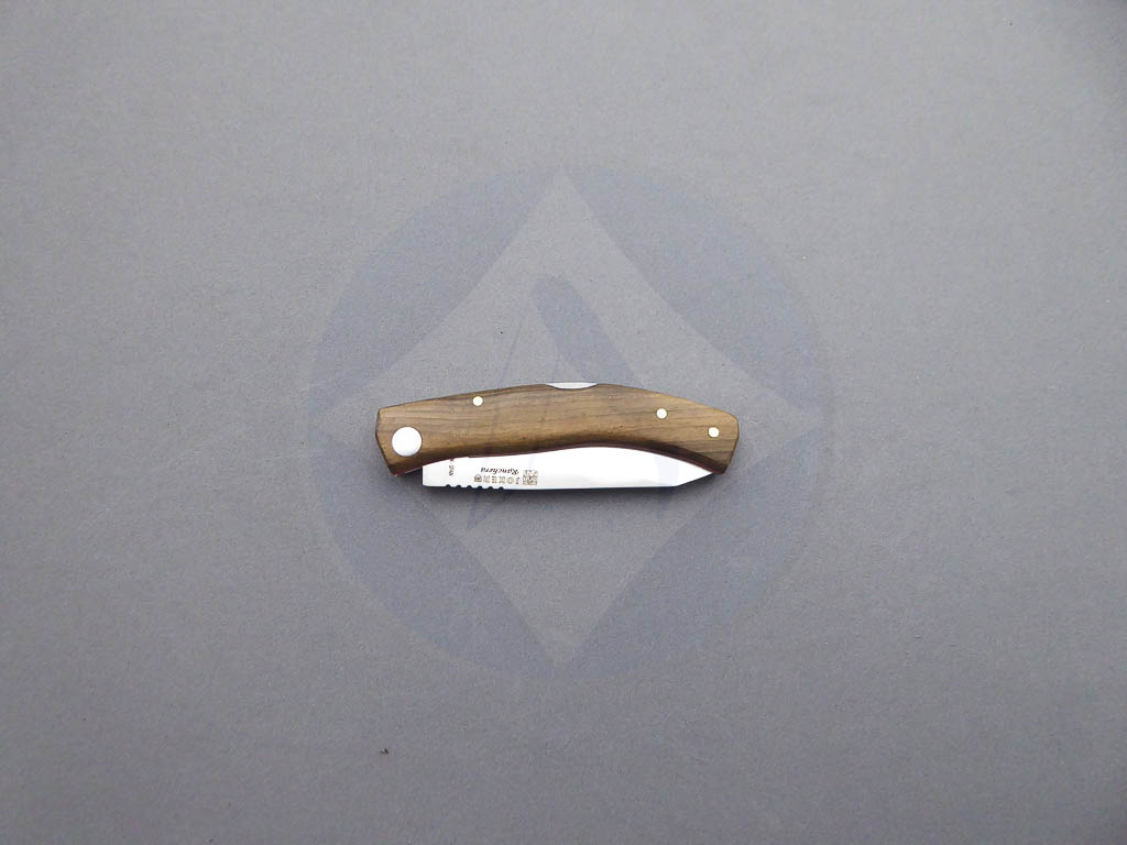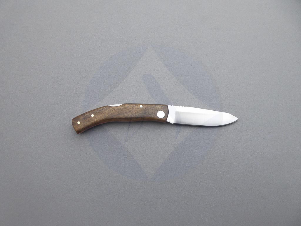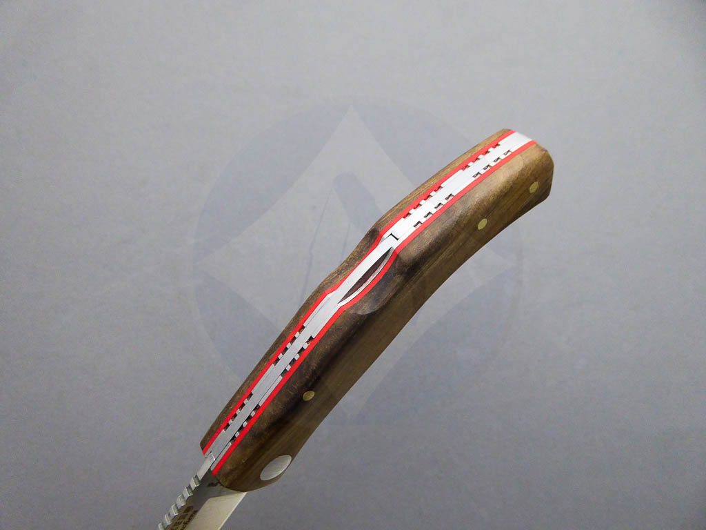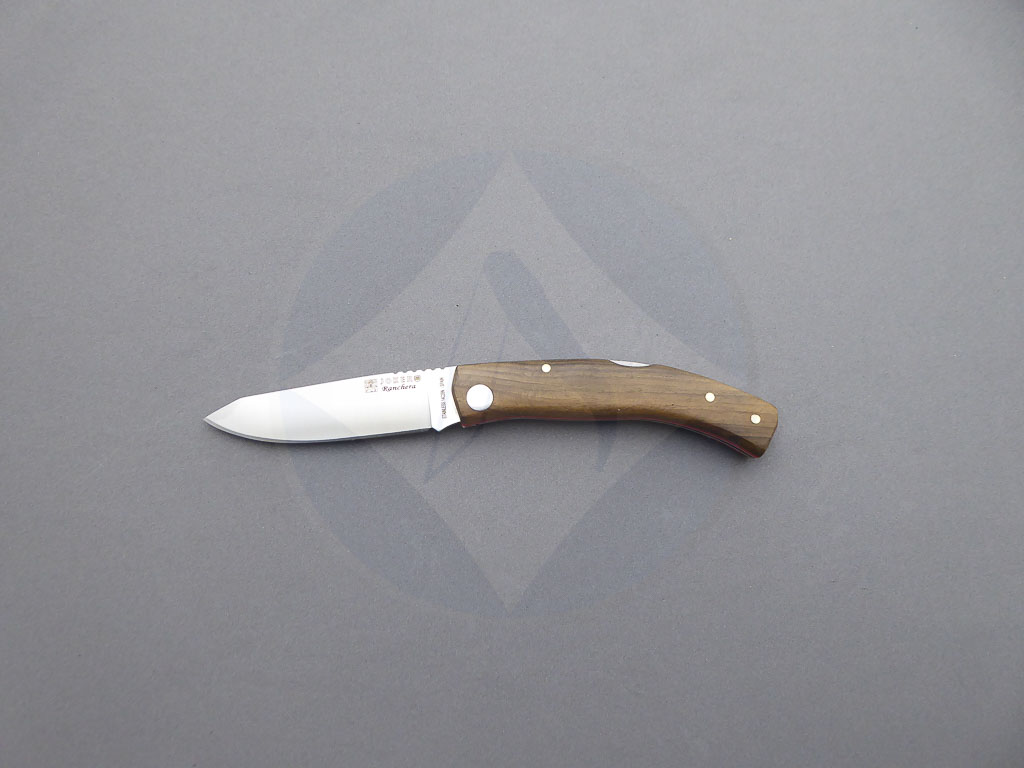 Descripción: Navaja deportiva «Ranchera» con mango de madera de nogal con separador rojo. Hoja de acero inoxidable de gran resistencia y durabilidad. Bloqueo de seguridad back lock. Hecha a mano en Albacete. Ideal para actividades al aire libre, caza o uso diario.