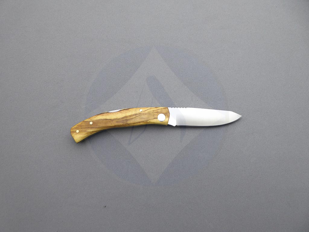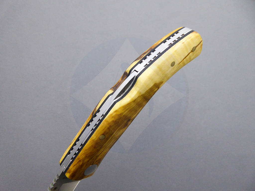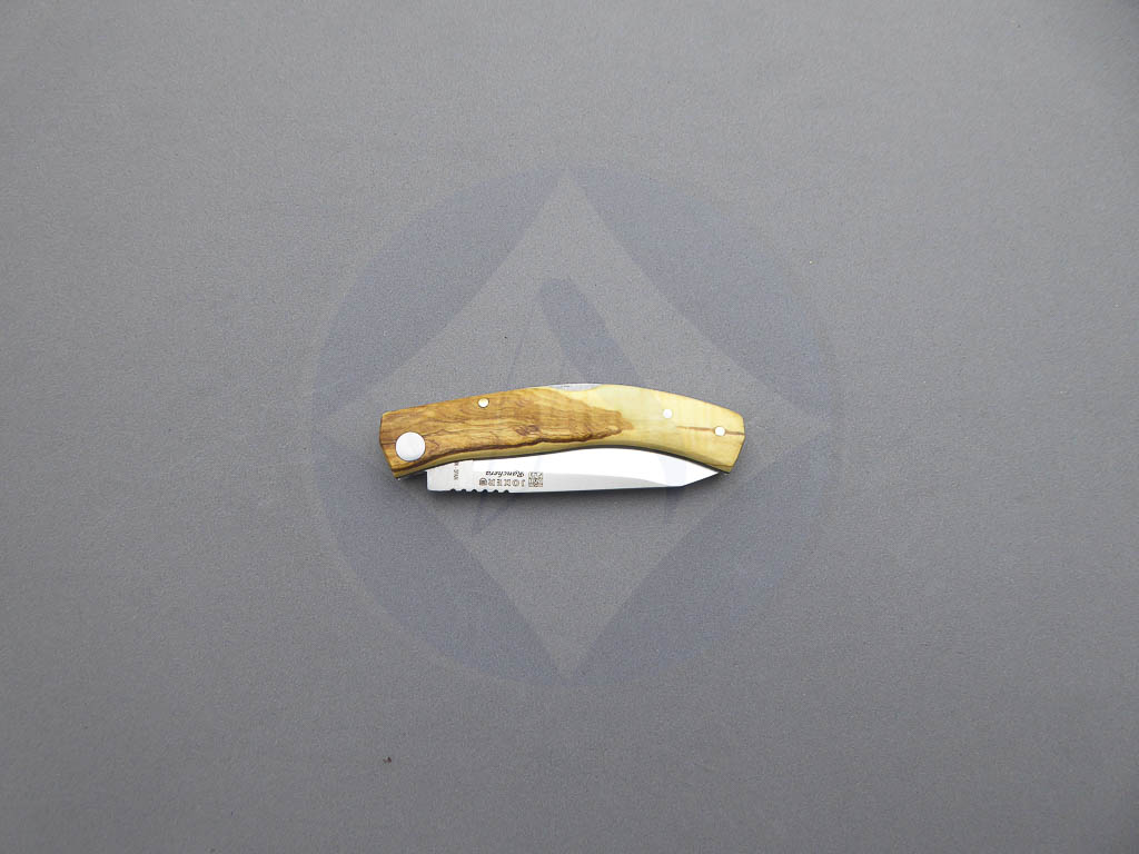 Descripción: Navaja deportiva «Ranchera» con mango de madera de olivo con separador negro. Hoja de acero inoxidable de gran resistencia y durabilidad. Bloqueo de seguridad back lock. Hecha a mano en Albacete. Ideal para actividades al aire libre, caza o uso diario.