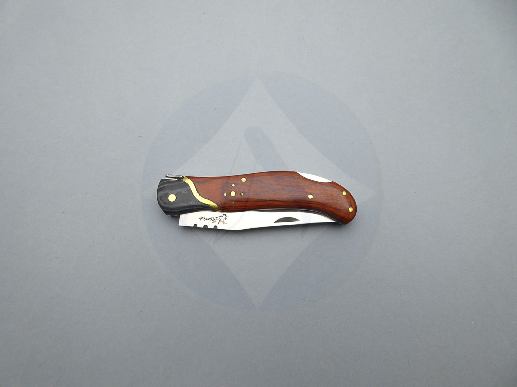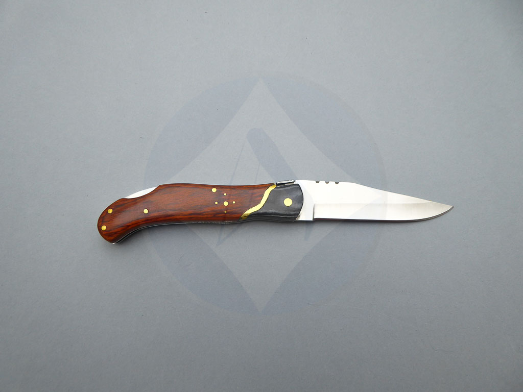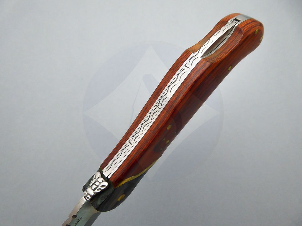 Descripción: Navaja «Laguiole-Lujo» con mango de madera stamina roja, virola de mikarta negra con adorno en alpaca. Hoja de acero inoxidable acabado espejo, con uña para su fácil extracción. Bloqueo de seguridad Back lock. Diseñada en España.