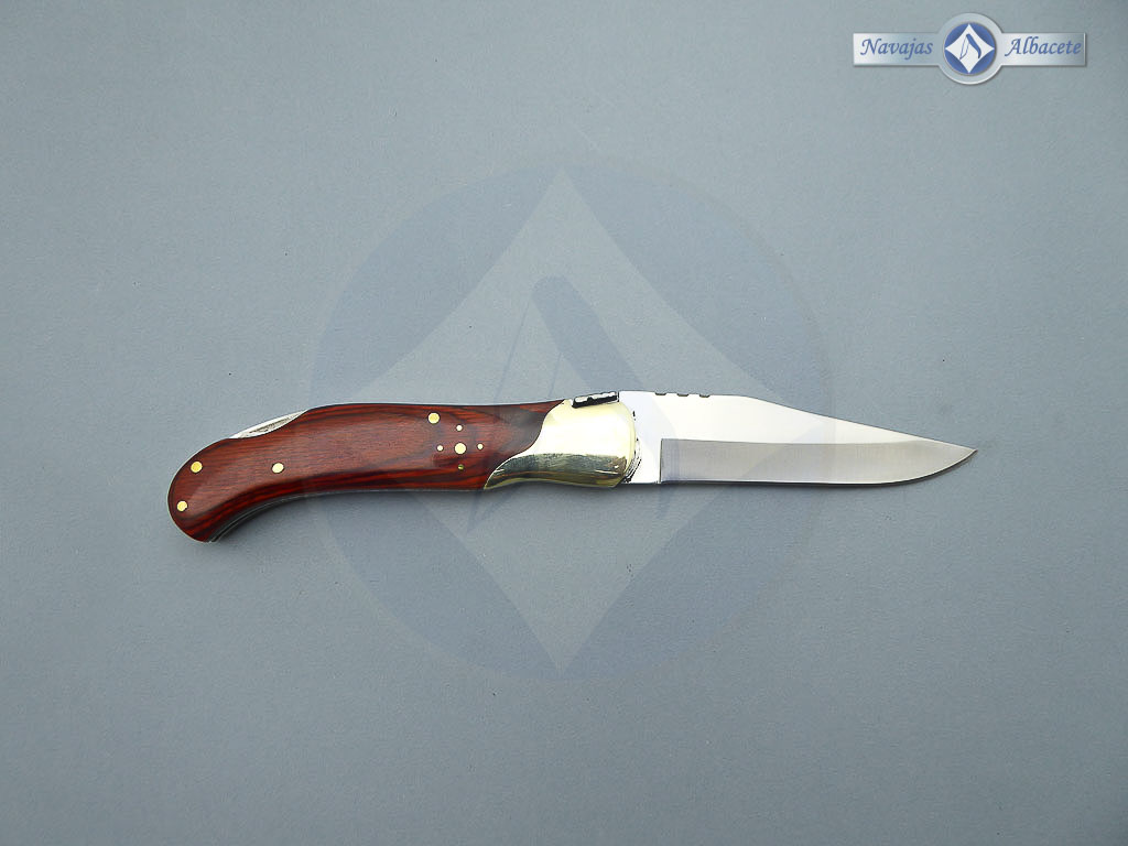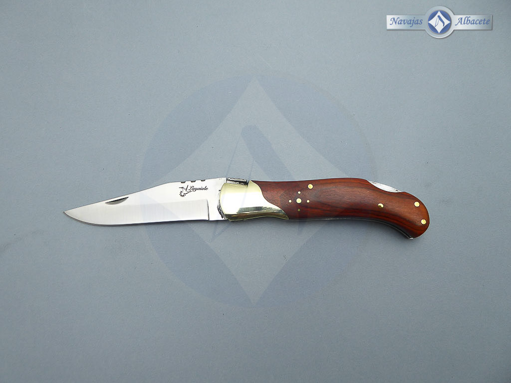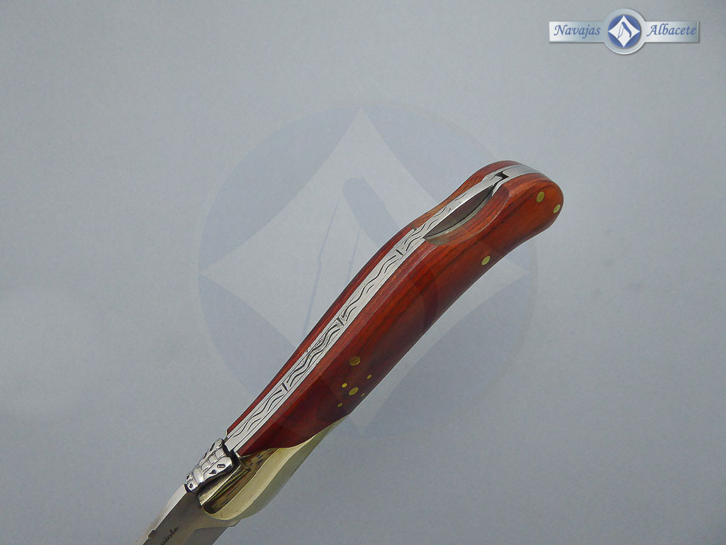 Descripción: Navaja «Laguiole-Lujo» con mango de madera stamina roja, virola de alpaca. Hoja de acero inoxidable acabado espejo, con uña para su fácil extracción. Bloqueo de seguridad Back lock. Diseñada en España.
