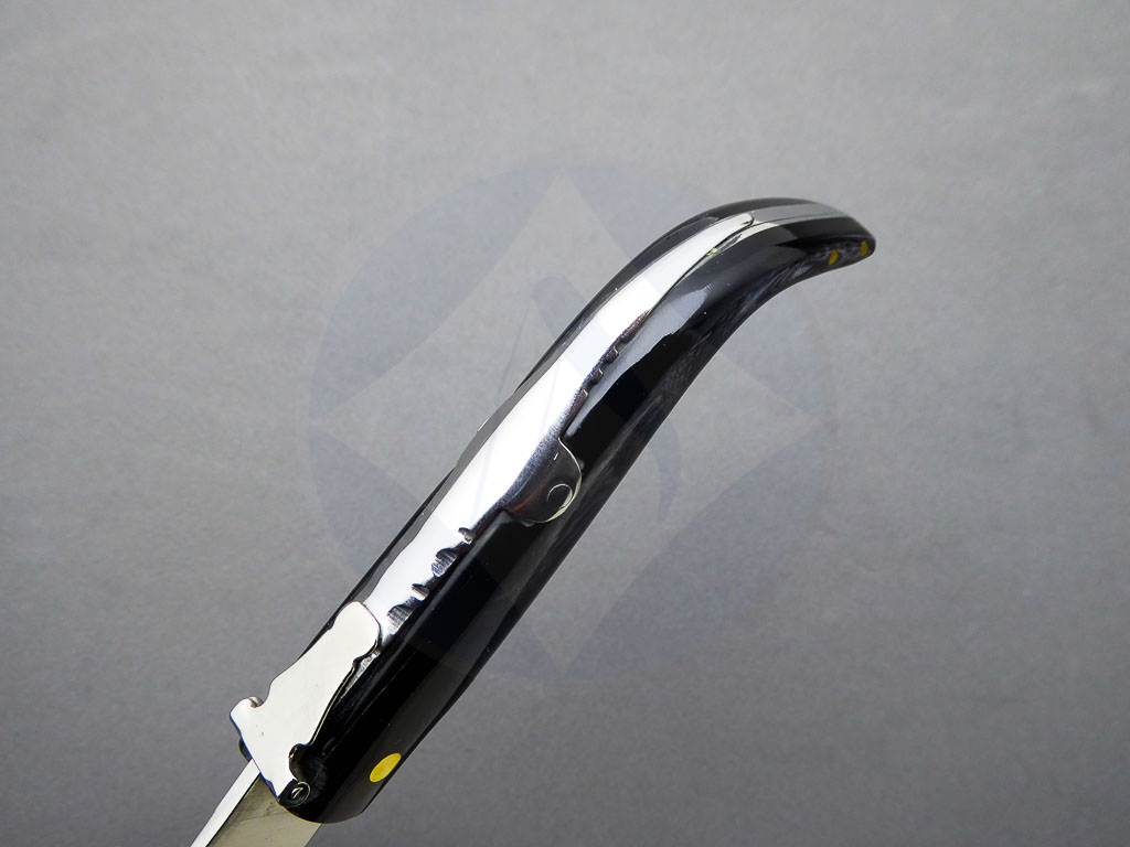 Elaborada con una hoja de 8 cm en acero inoxidable MoVa 1.4116 (Molibdeno Vanadio), esta navaja deportiva ofrece un corte preciso, excelente retención de filo y alta resistencia a la corrosión, siendo la compañera ideal para tareas agrícolas, preparación de alimentos en camping o labores de artesanía. Su empuñadura está confeccionada en asta de toro auténtica. Al ser un material completamente natural, cada pieza es única y exclusiva, pudiendo presentar elegantes variaciones en sus tonalidades y vetas.