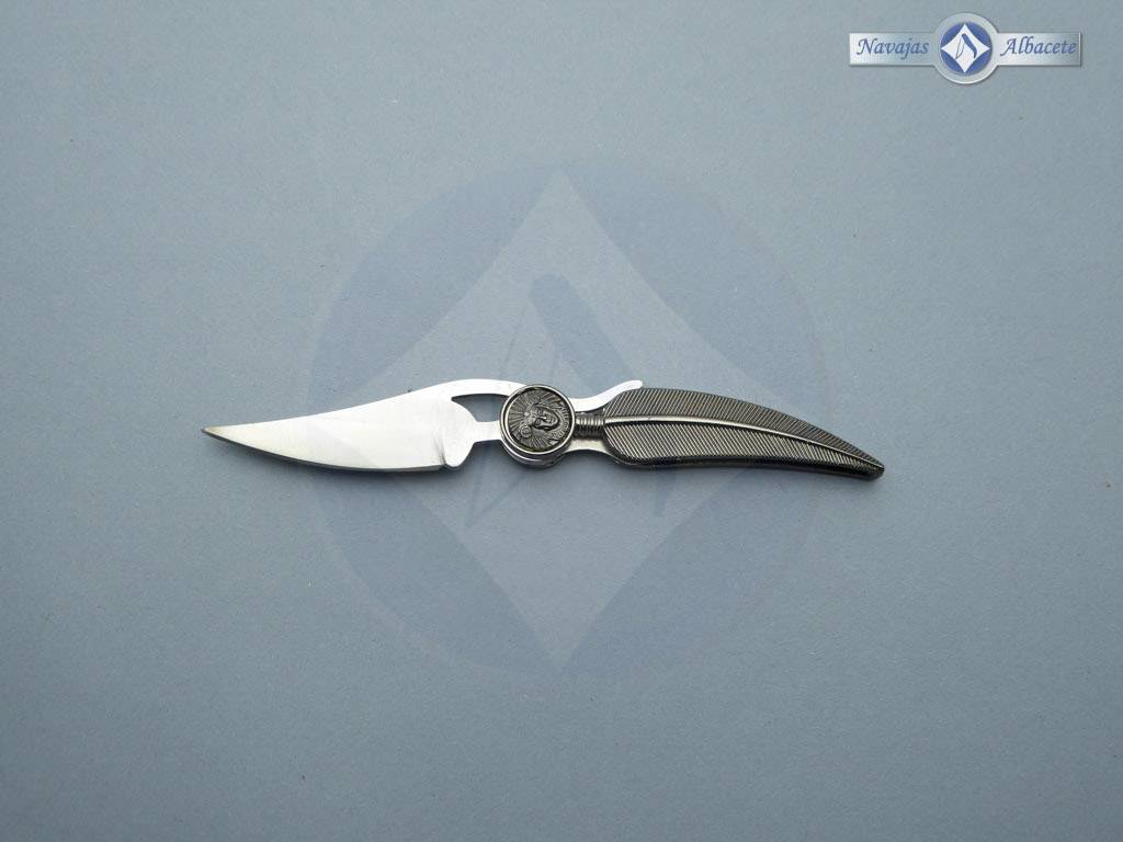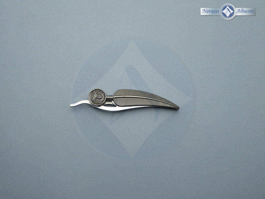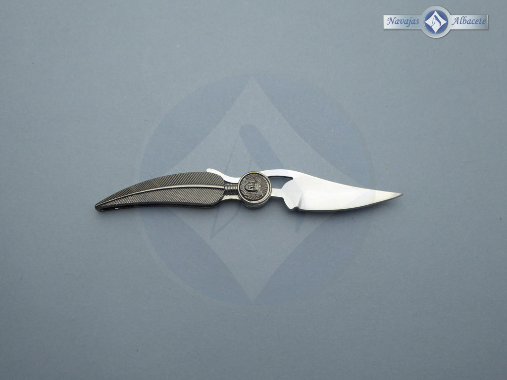 Descripción: Navaja con forma de pluma de indio, tamaño bolsillo, con mango de aluminio. Hoja de acero inoxidable molibdeno vanadio. Bloqueo de seguridad Liner lock