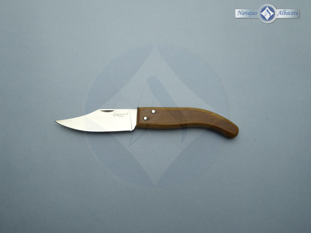 Descripción: Navaja Extremeña campera con mango de madera. Hoja de acero inoxidable satinada, con uña para su fácil extracción. Disponible en varios tamaños de hoja, seleccione la opción que desee.