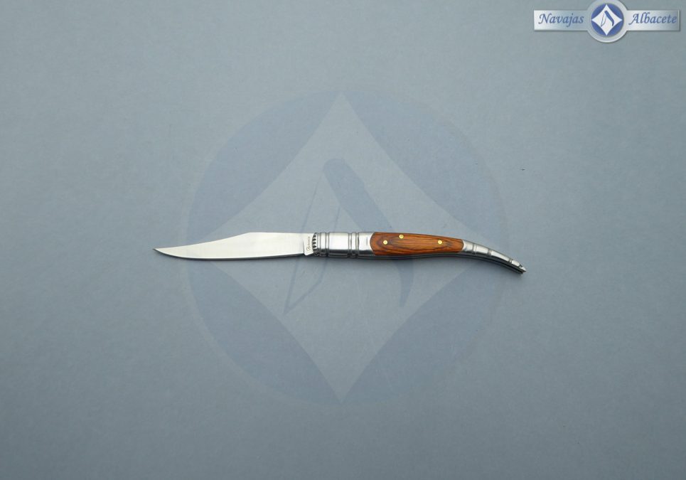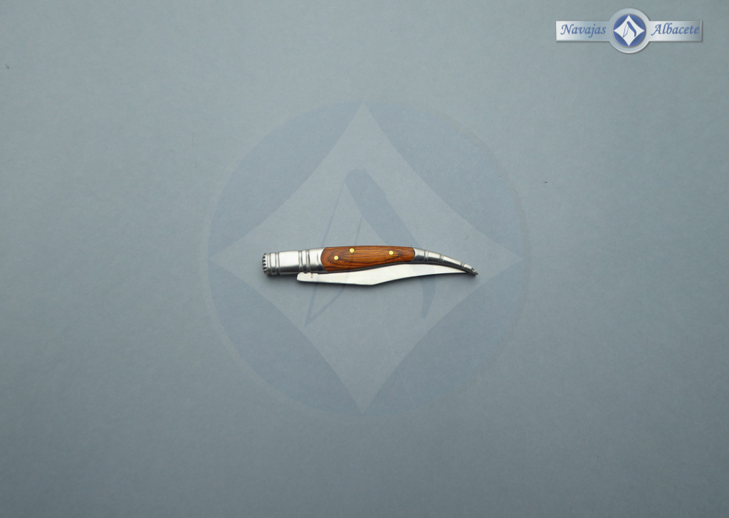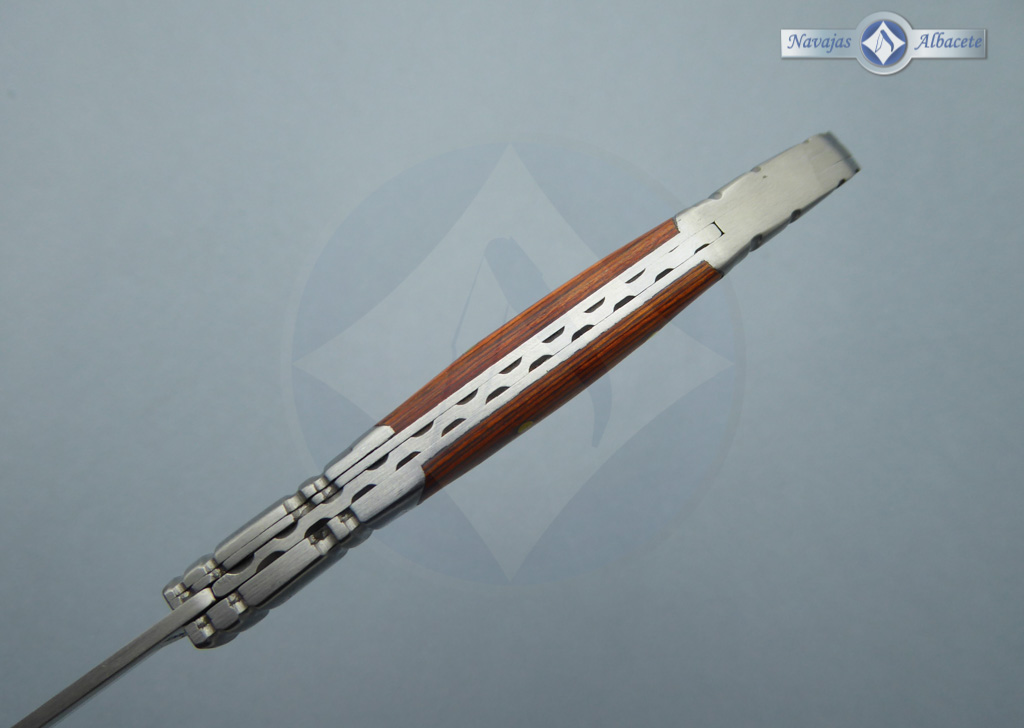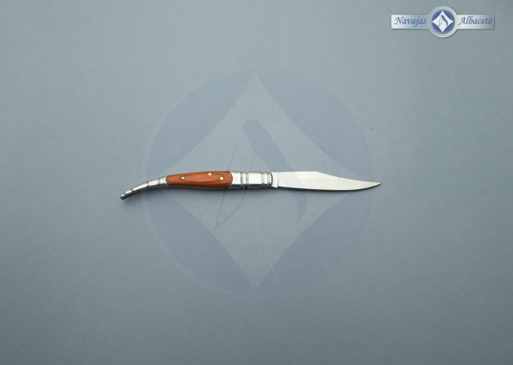 Descripción: «Serranita» Navaja clásica con mango en madera stamina roja, virola y rebajo en acero. Hoja de acero inoxidable. El muelle es de acero tipo pistón decorado. Disponible en dos tamaños de hoja, seleccione la opción que desee.