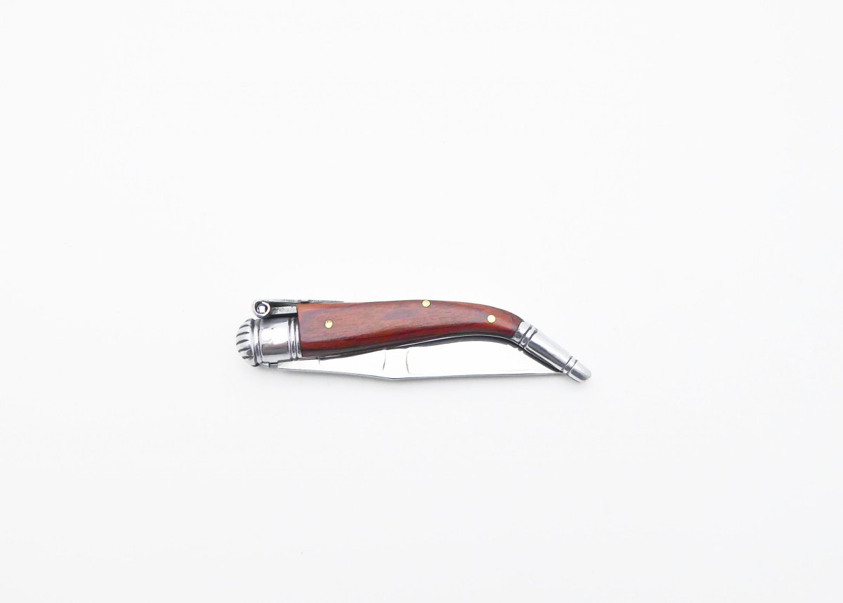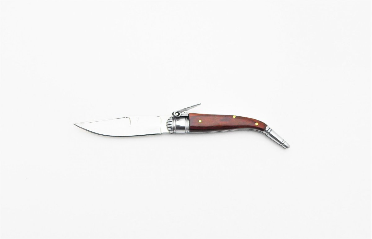 Descripción: «Sevillana» Navaja clásica con mango en madera de stamina, virola y rebajo en aluminio. Hoja de acero inoxidable molibdeno vanadio cromado. El muelle es de acero decorado con palanquilla. Disponible en distintos tamaños de hoja, seleccione la opción que desee.