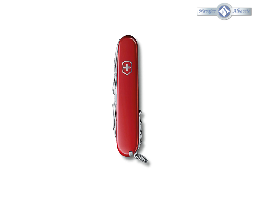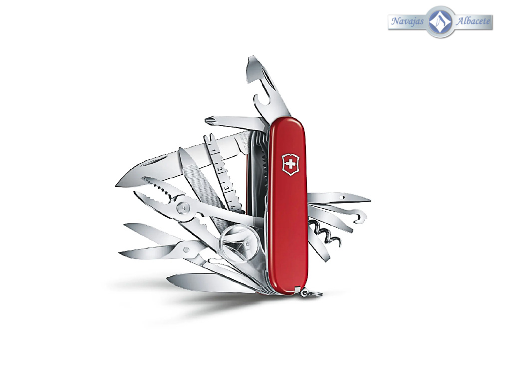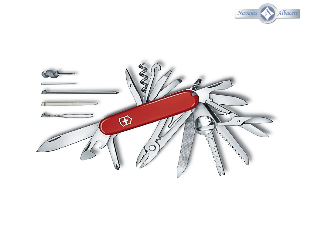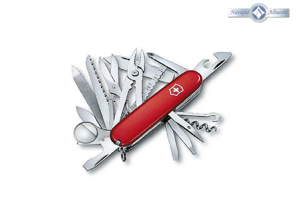 Descripción: Navaja multiusos de bolsillo Victorinox «Swiss Champ», con mango de plástico ABS/cellidor color rojo. Hoja de acero inoxidable de gran calidad. Incluye anilla llavero, con 33 funciones e innumerables posibilidades para utilizar al aire libre o en interiores: