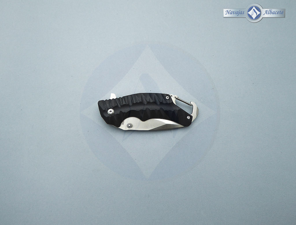 Descripción: Navaja táctica «Outdoor» con mango de plástico ABS color negro. Hoja de acero inoxidable molibdeno vanadio acabado satinado. Bloqueo de seguridad Liner lock. Incluye mosquetón y clip trasero para cinturón.