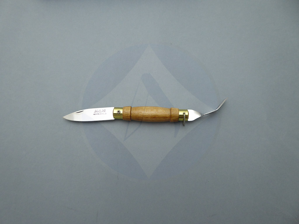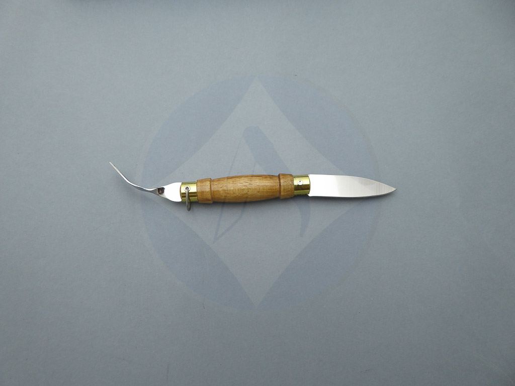 Descripción: Navaja tenedor MAM con mango de madera y virola de latón. Hoja de acero inoxidable molibdeno vanadio, con uña para una fácil extracción. Cierre de pistón. Incluye tenedor. Las navajas MAM son fabricadas en Portugal y son reconocidas por su alta calidad y durabilidad.