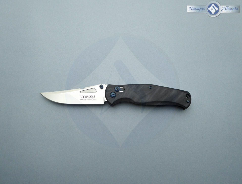 Descripción: Navaja táctica Tokisu con mango de G10 color negro, ergonómico. Hoja de acero inoxidable con terminación CNC satinado. Sistema de cierre mediante bloqueo Asis Lock. Con clip. Diseñada en España. Incluye caja imantada y funda de terciopelo negro.
