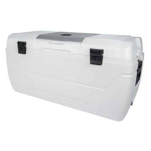 La Maxcold 165 cuenta con el aislante patentado por Igloo llamado Ultratherm™ con un grosor de 46mm. A diferencia de otras marcas que utilizan placas de poliespán de grosor variable, el aislante de Igloo se fabrica en poliuretano inyectado con mayor capacidad de aislamiento. Además, esta presente tanto en el cuerpo de la nevera como en la tapa superior que le permiten alcanzar hasta 7 días de conservación del frio.