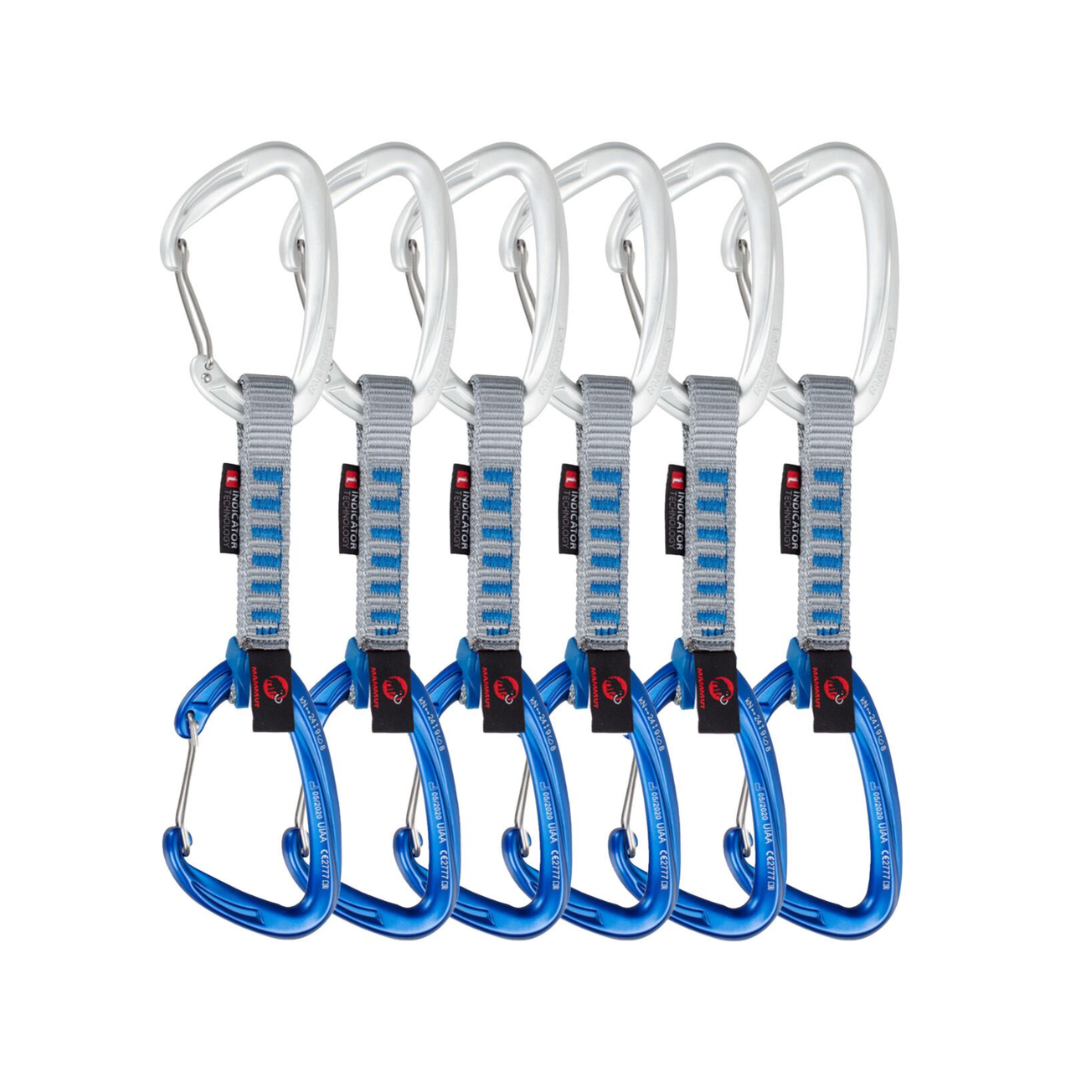 Los mosquetones rápidos Crag Wire son adecuados para su uso en cada temporada de escalada y ofrecen un valor excepcional por su dinero. Las compuertas de alambre ligeras permanecen completamente funcionales incluso en nieve y hielo. Las eslingas de poliéster robustas están equipadas con una tecnología indicadora. Si se dañan, las fibras rojas del núcleo brillan a través. Un protector de eslinga mantiene el mosquetón de la cuerda en su lugar y evita el desgaste.