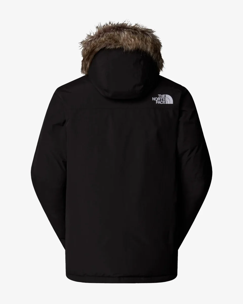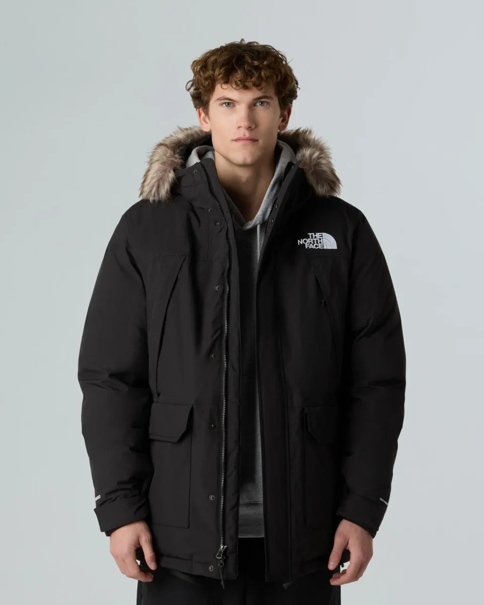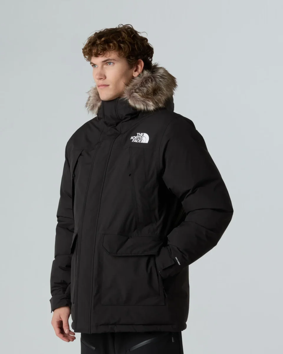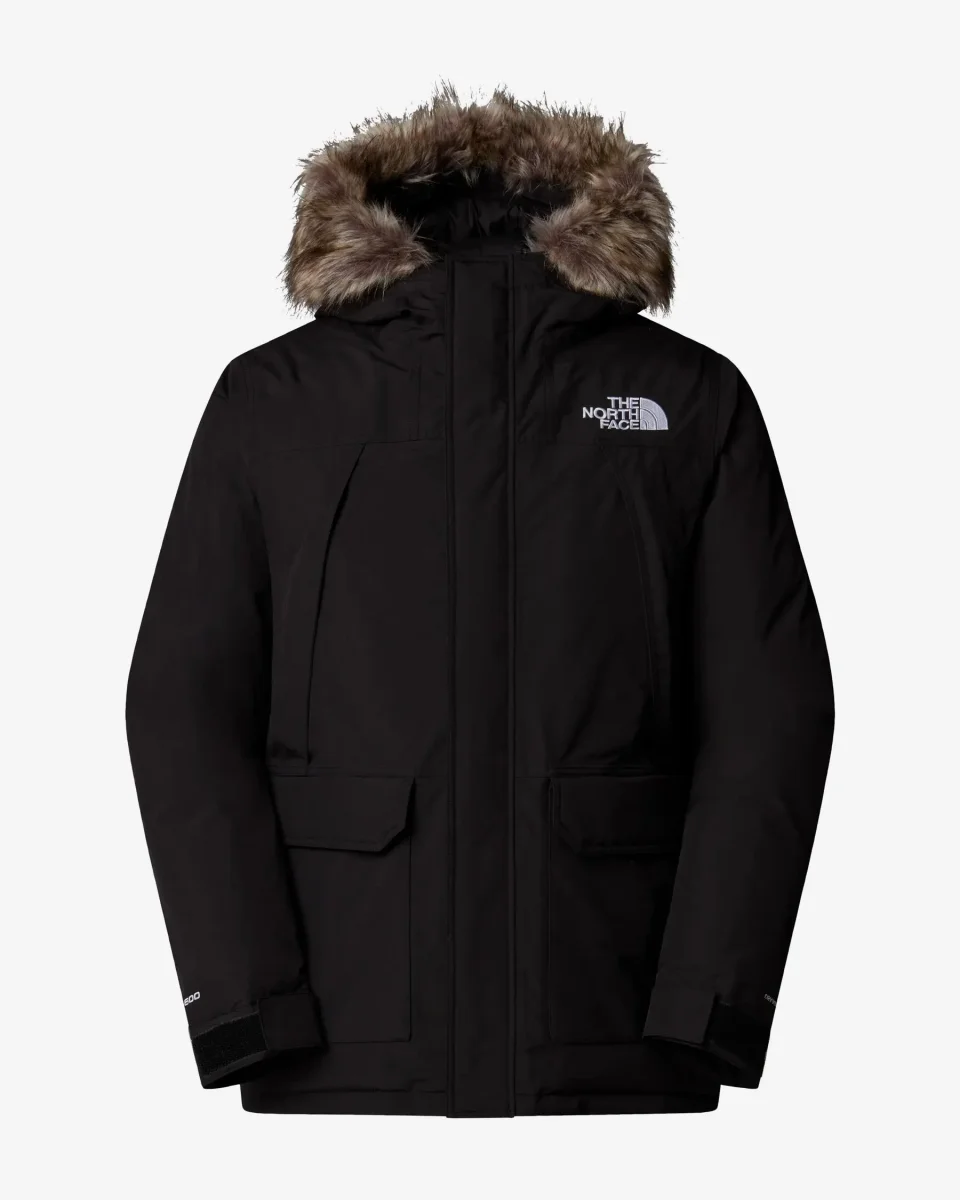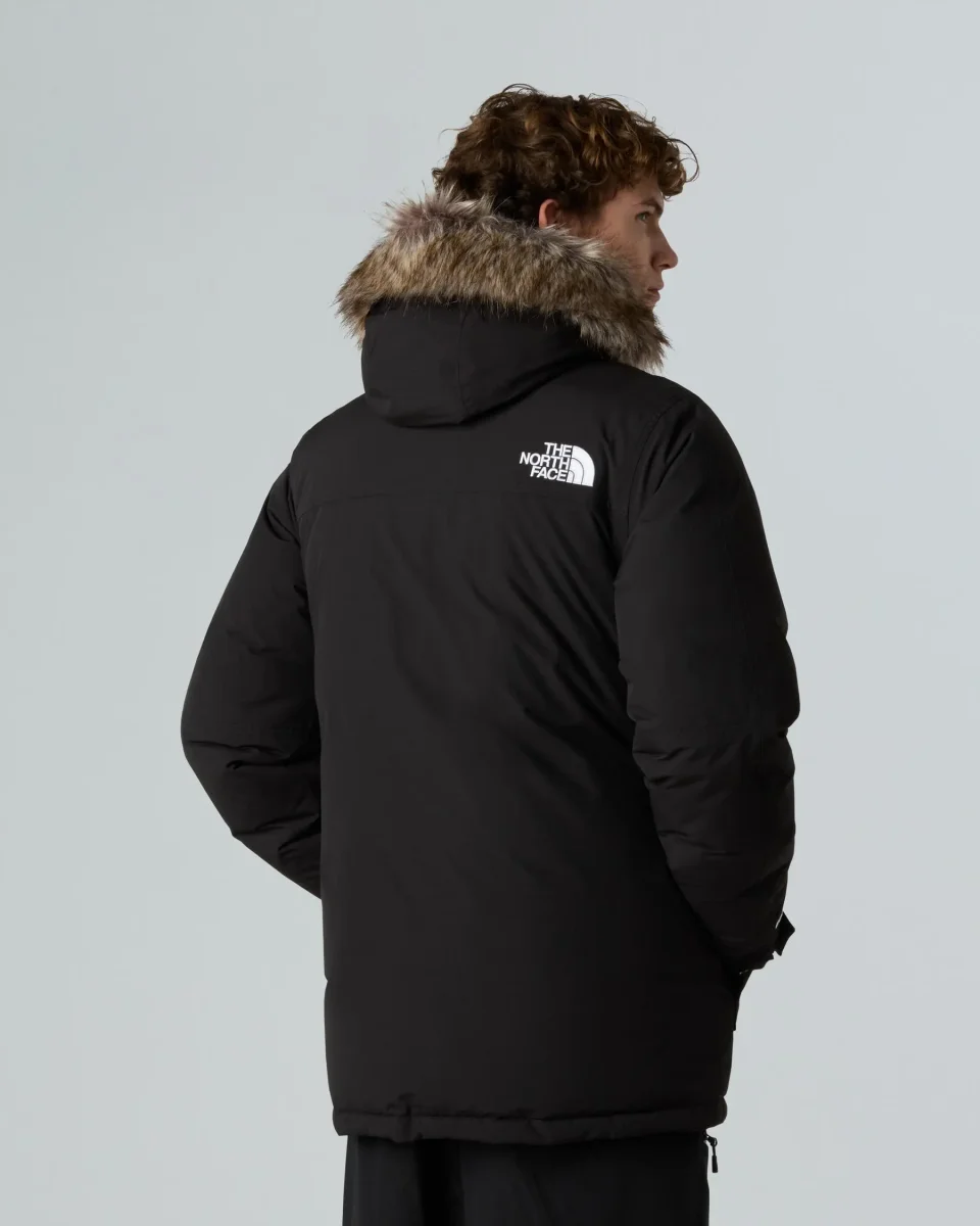 La parka negra McMurdo de The North Face ofrece una calidez y protección excepcionales para las duras condiciones invernales. Con materiales duraderos y resistentes a la intemperie, y un aislamiento de alta calidad, te protege del viento frío y la nieve, a la vez que mantiene la transpirabilidad. Su diseño inteligente incluye una capucha con ribete de piel sintética, múltiples bolsillos seguros para objetos esenciales y puños ajustables para mayor comodidad y funcionalidad. Ideal tanto para entornos urbanos como al aire libre, esta parka combina un rendimiento robusto con un estilo atemporal.