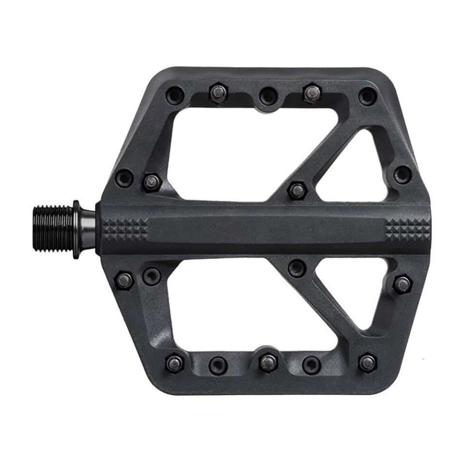 Los pedales de plataforma Crankbrothers Stamp 1 Large son especificos en compuesto e interfaz zapatilla/pedal optimizada. Tienen 9 pines ajustables a cada lado del pedal.